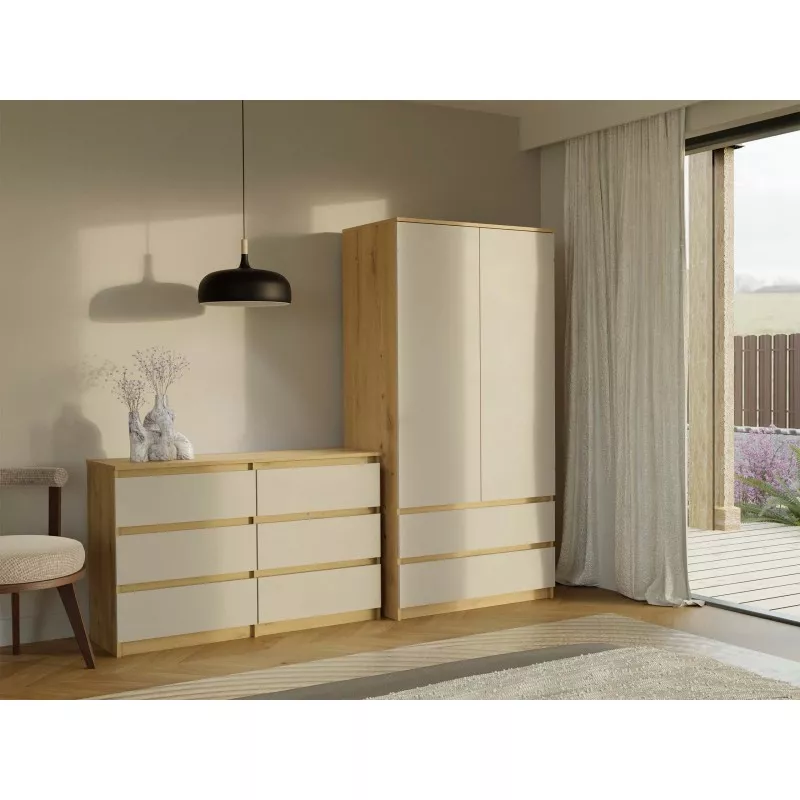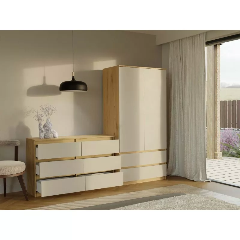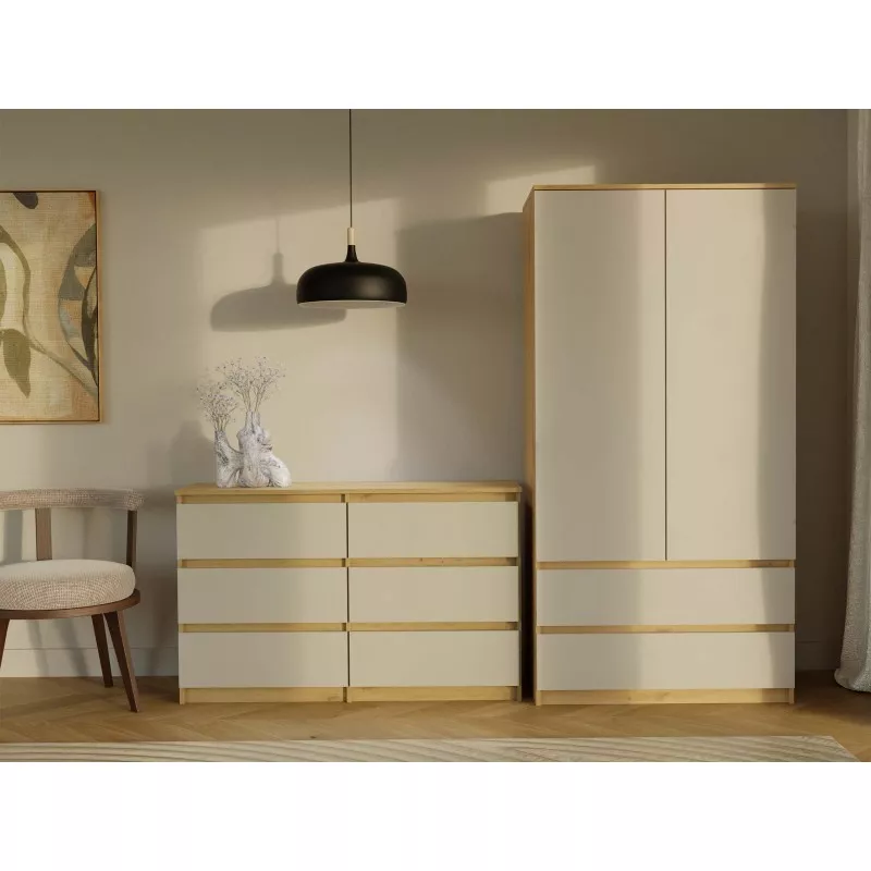 Široká komoda se zásuvkami TAAVI - dub artisan / kašmír