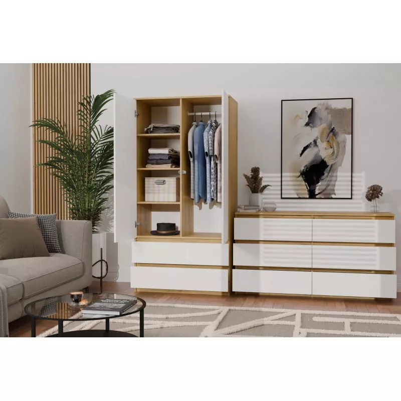 Široká komoda se zásuvkami TAAVI - dub artisan / bílá