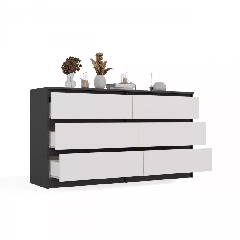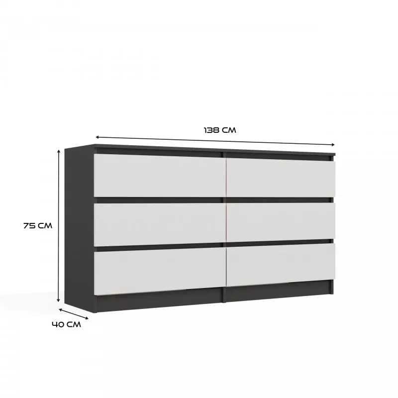 Široká šuplíková komoda TAAVI - antracitová / bílá