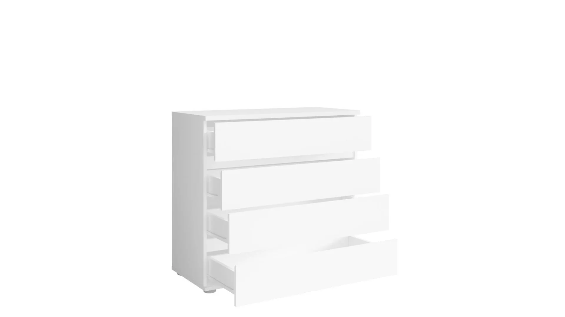 Dopřejte si komodu DUITAMA, která v sobě spojuje praktické využití a moderní styl. 4 prostorné zásuvky zajistí přehledné uložení oblečení i drobností a pomohou udržet dokonalý pořádek. Skvěle se hodí do ložnice, chodby i obývacího pokoje. Elegantní provedení komody zaujme jednoduchými liniemi a nadčasovým designem.