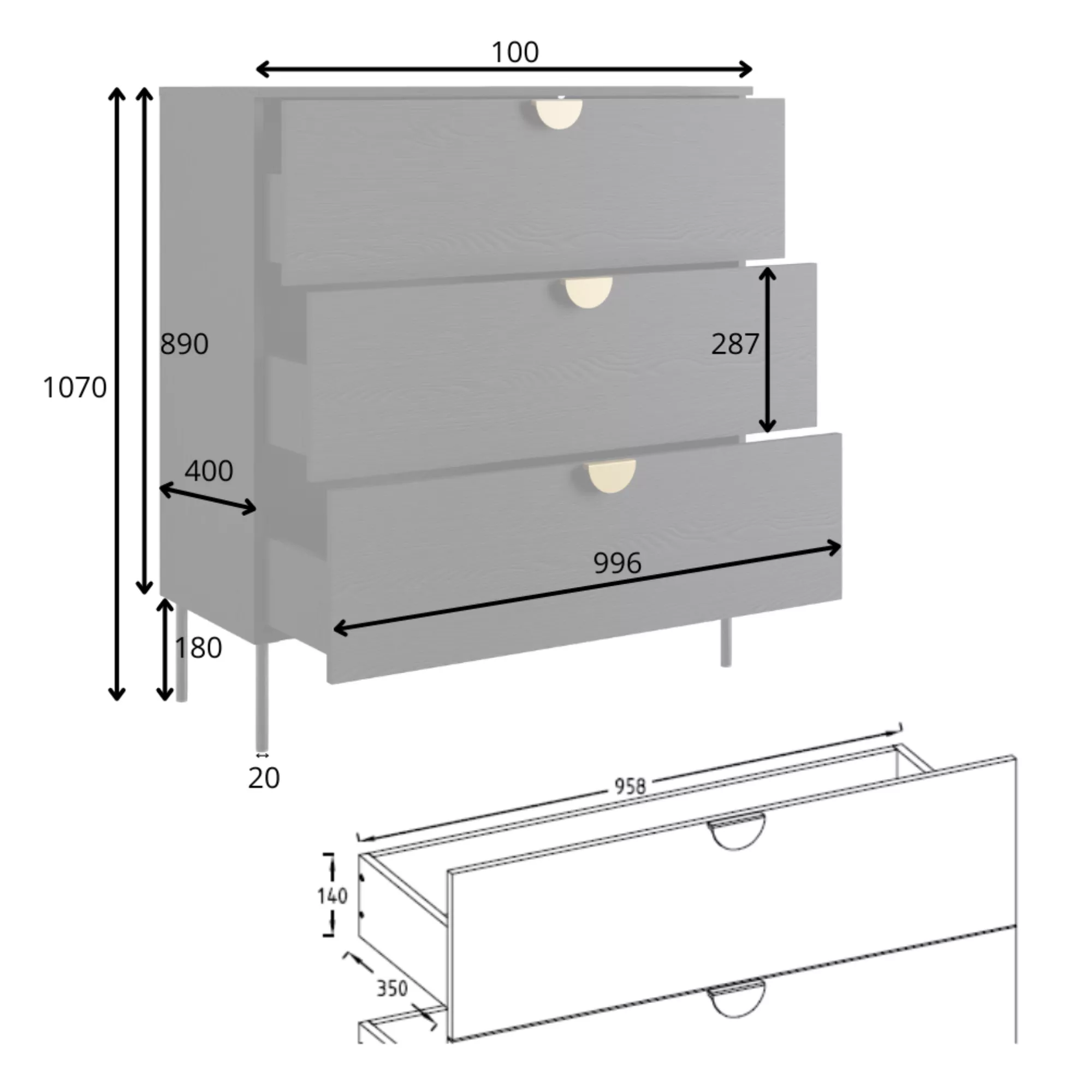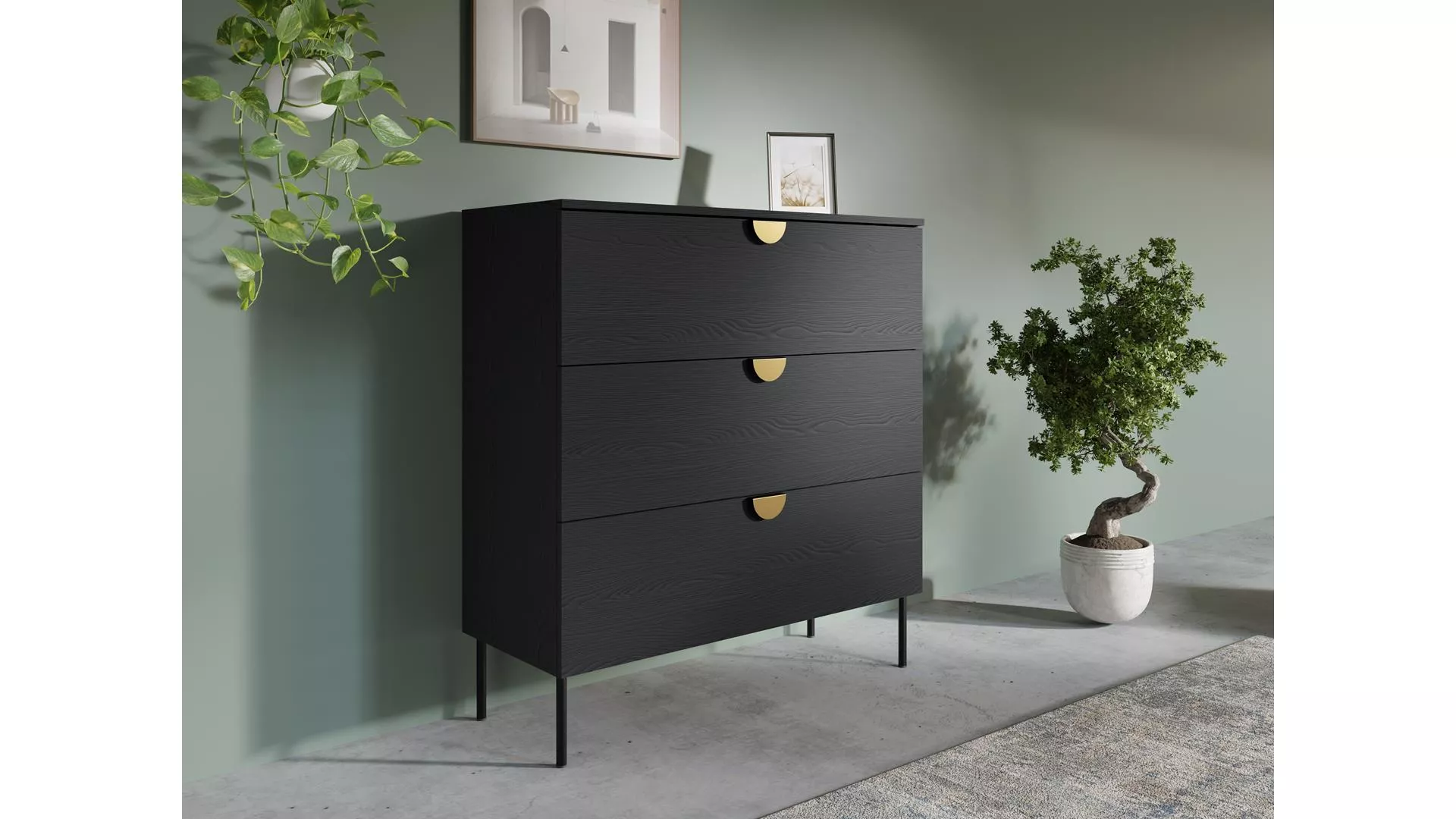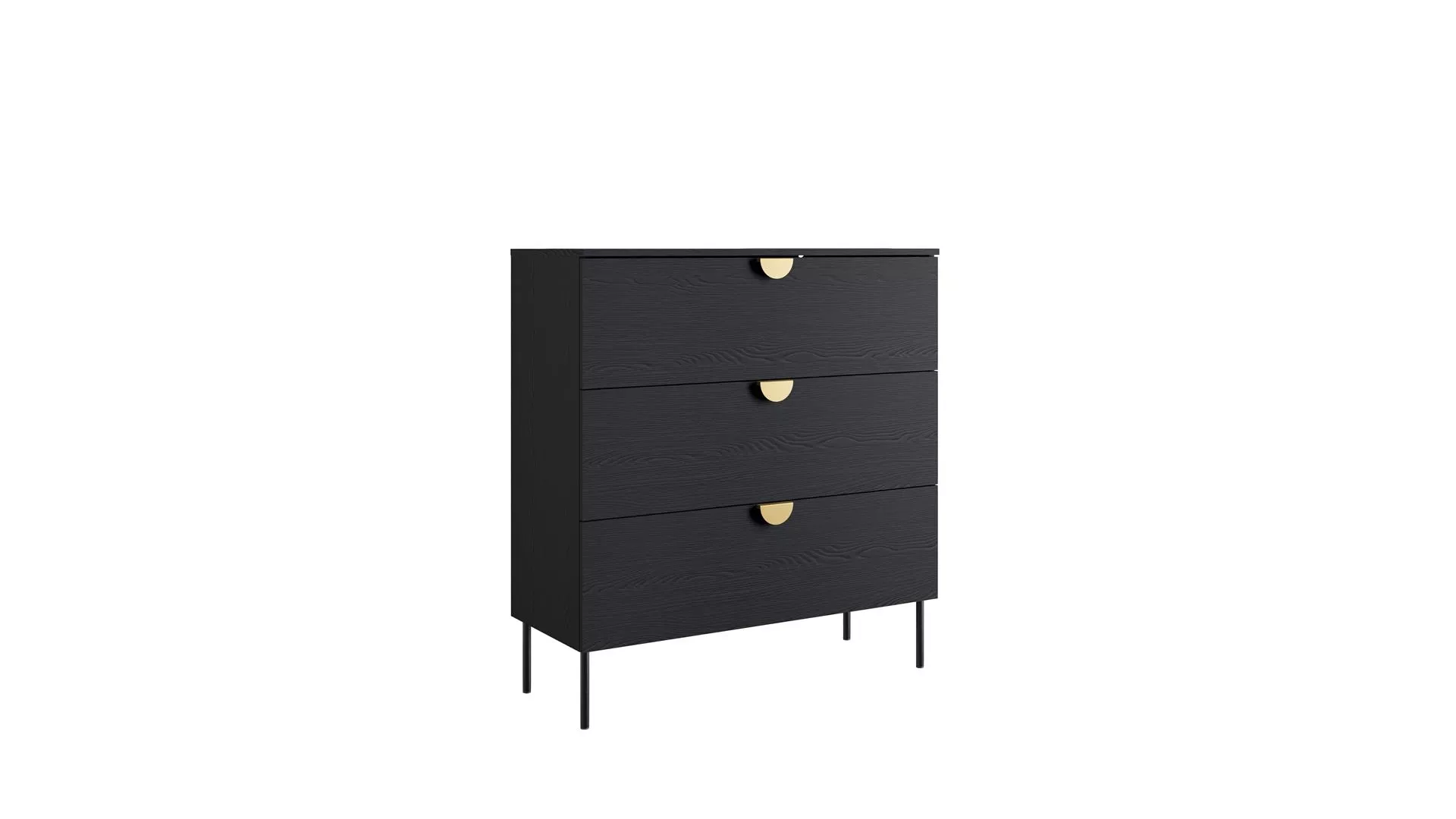 Dopřejte si komodu MOSQURA, která kombinuje luxusní eleganci s praktickým úložným prostorem. Šuplíky zajistí pořádek a přehlednost v obývacím pokoji i ložnici. Výrazná textura povrchu přitahuje pozornost a dodává nábytku jedinečný charakter. Černý dekor doplňují zlaté půlkruhové úchytky, které podtrhují industriální a stylový design.