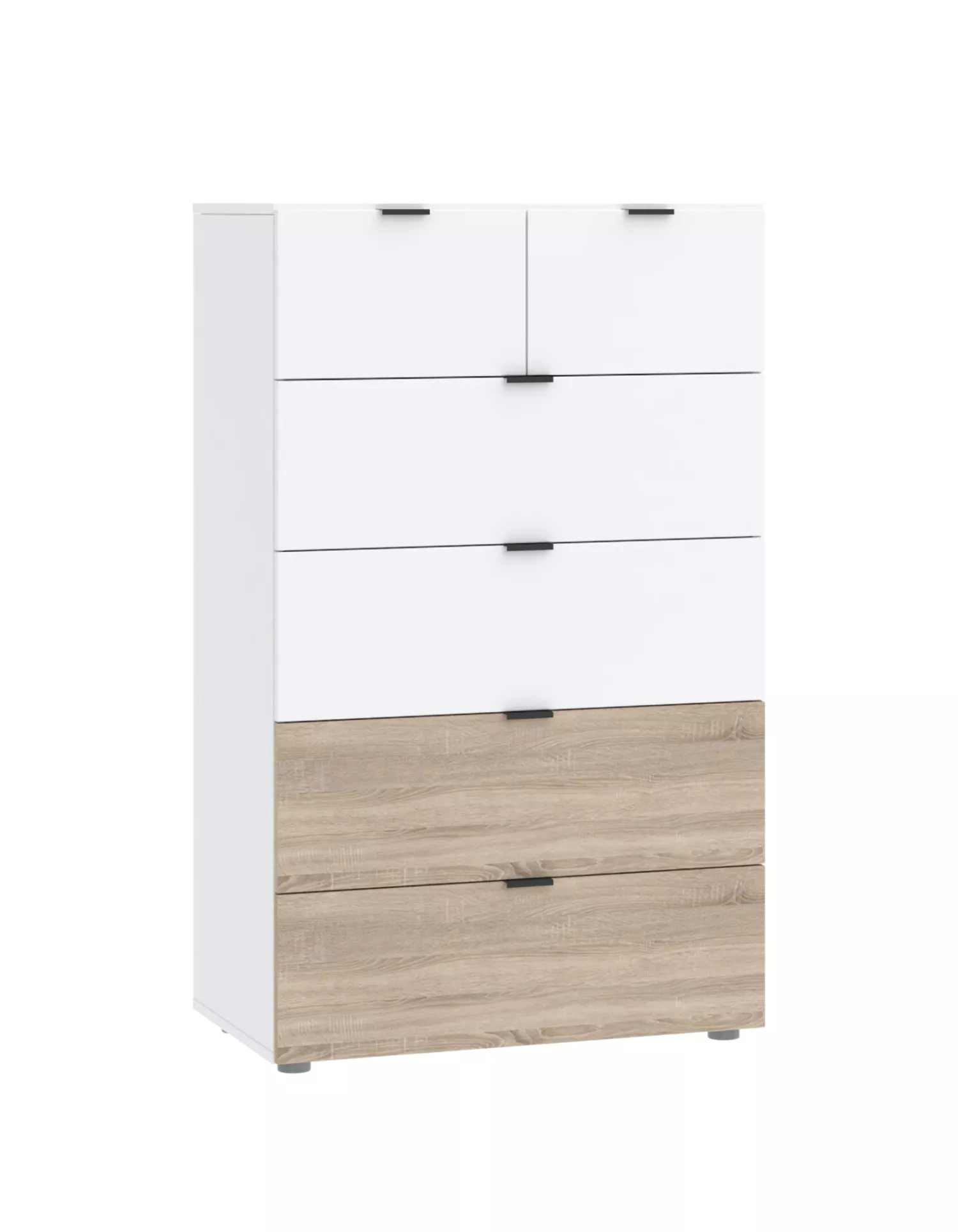 Šuplíková komoda ZARA se svým minimalistickým zpracováním hodí do všech stylů interiérů. Disponuje 6 prostornými šuplíky pro uschování všech potřebných věcí.