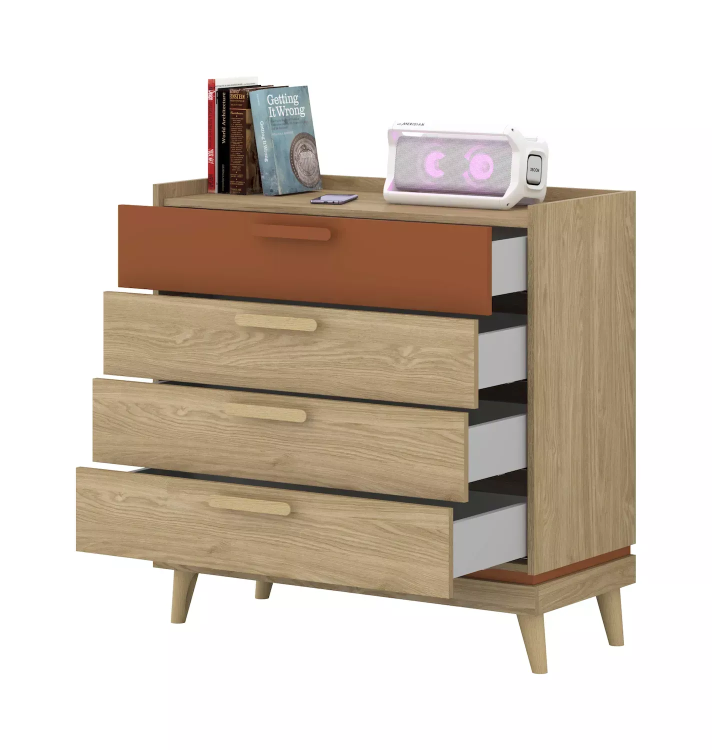 Šuplíková komoda ARWEN - dub / cihlová