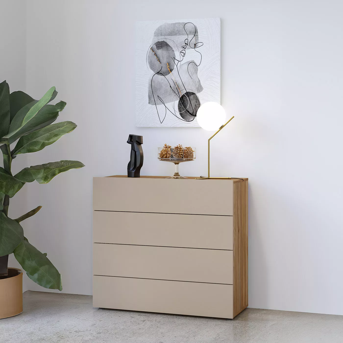 Šuplíková komoda NOAH - dub mauvella / béžová