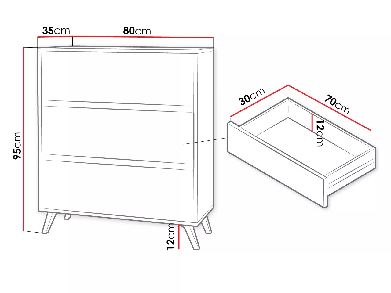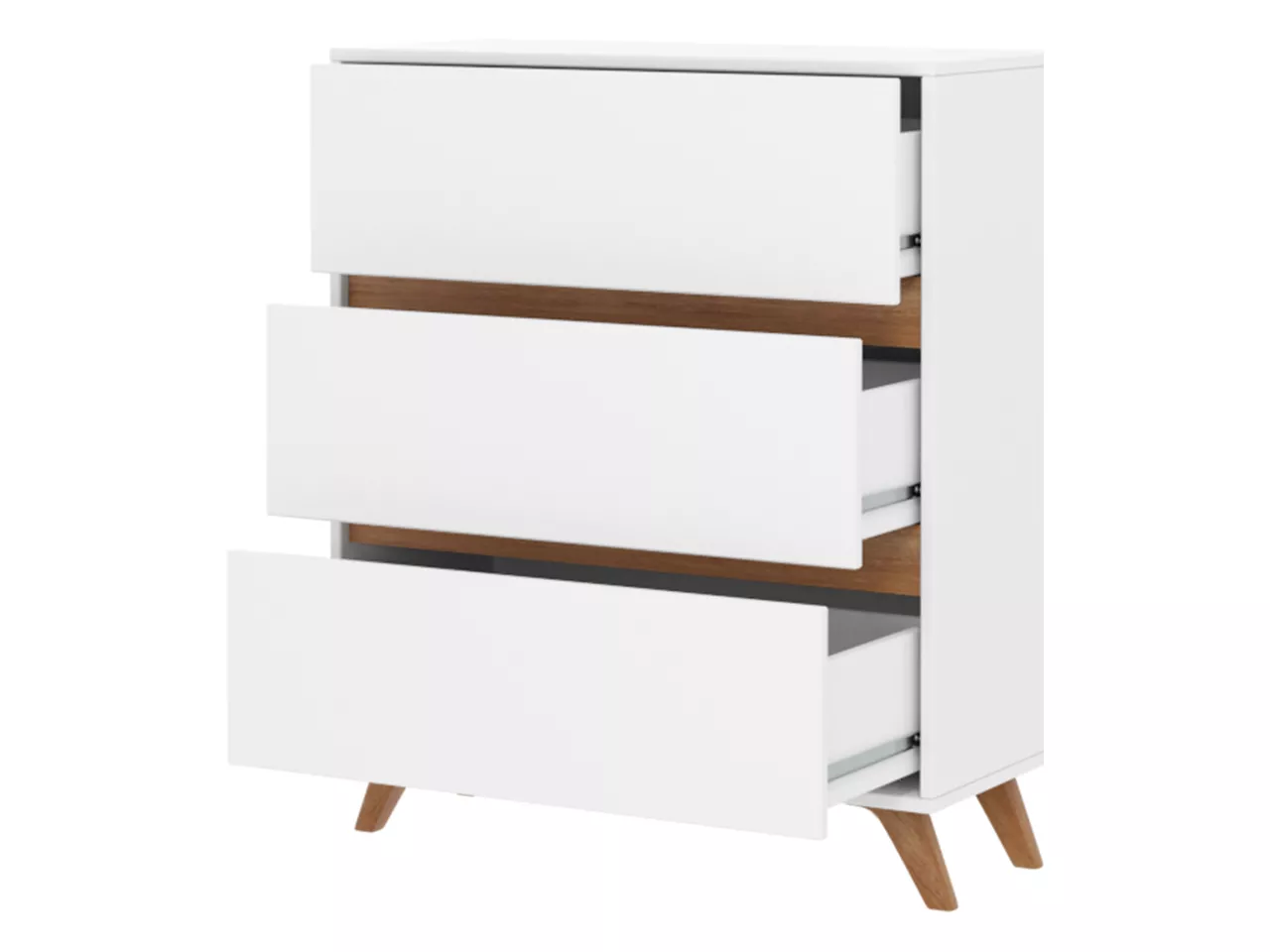 Šuplíková komoda MOREL se vyznačuje typickým skandinávským designem. Komoda nabízí dostatek úložného prostoru v podobě řady zásuvek. Hrany komody jsou zabezpečeny PVC dýhou, která zvyšuje odolnost nábytku.