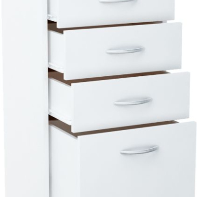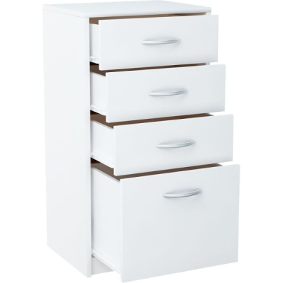 Šuplíková komoda IBOJA zaujme svým moderním provedením. Do úložného prostoru se 4 zásuvkami uložíte své oblečení, zatímco na horní desku můžete vystavit oblíbené dekorace či fotografie.