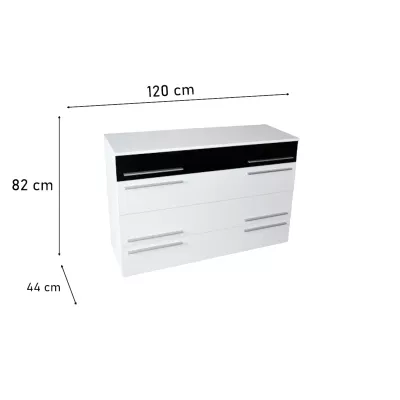 Komoda do ložnice HENRIETA - bílá / černý lesk