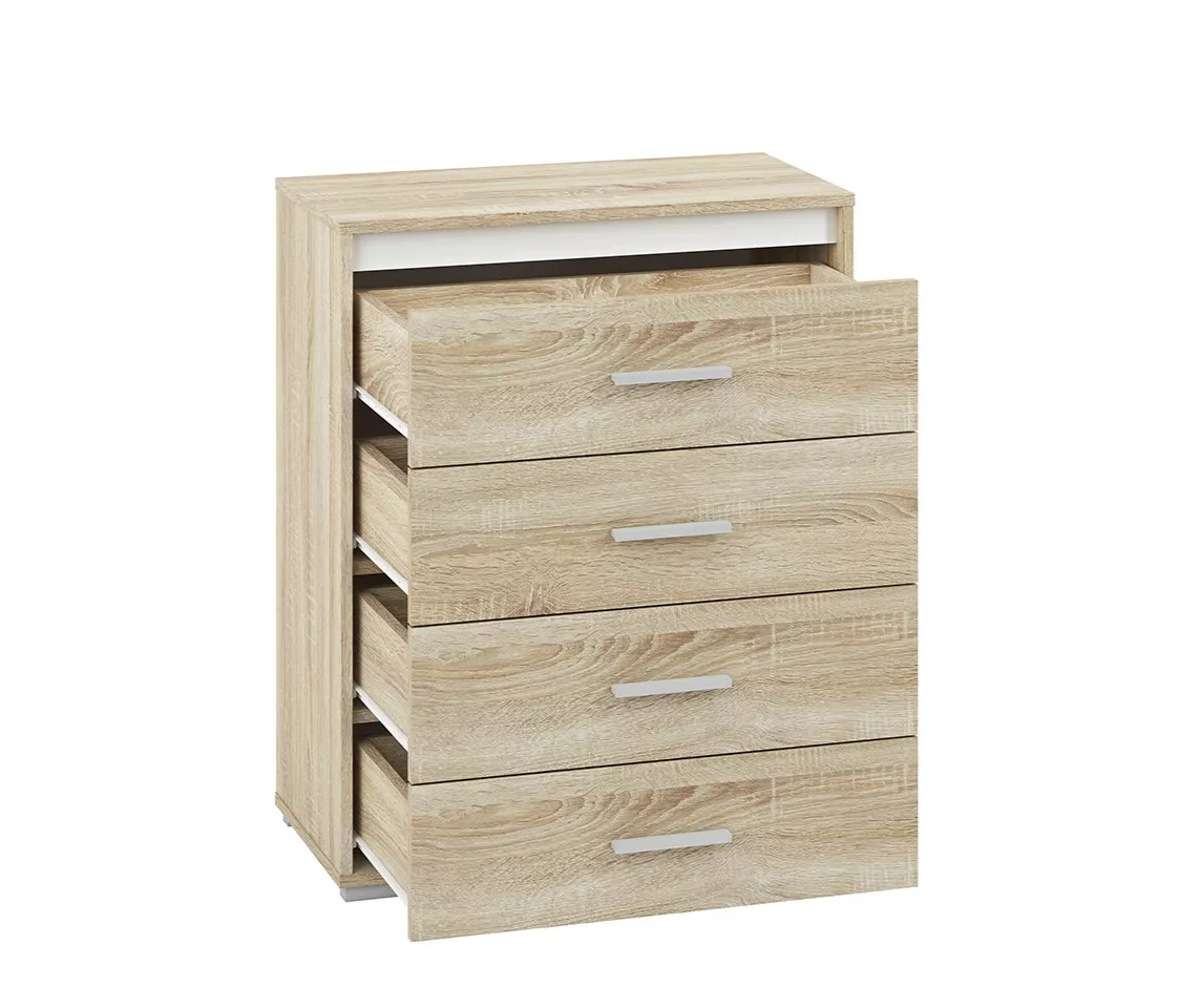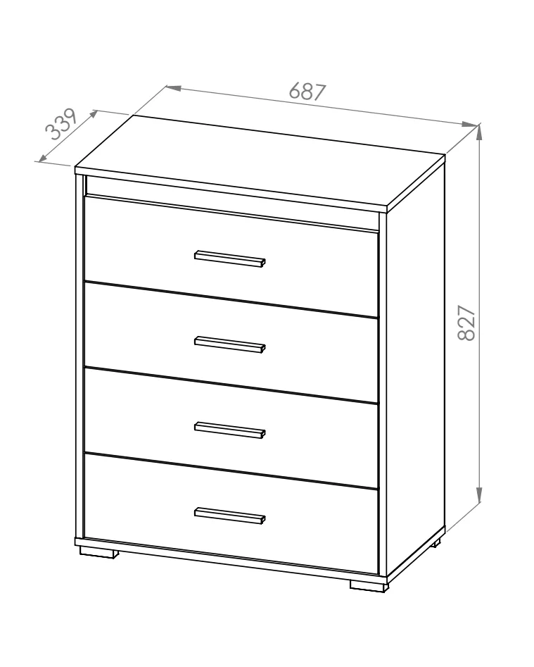 Šuplíková komoda GVENDA se hodí do všech moderních ložnic. Disponuje 4 šuplíky. Součástí jsou 3 lišty (bílá, antracit a světlá sonoma), kterými si můžete měnit vzhled vašeho pokoje bez nutnosti výměny nábytku.