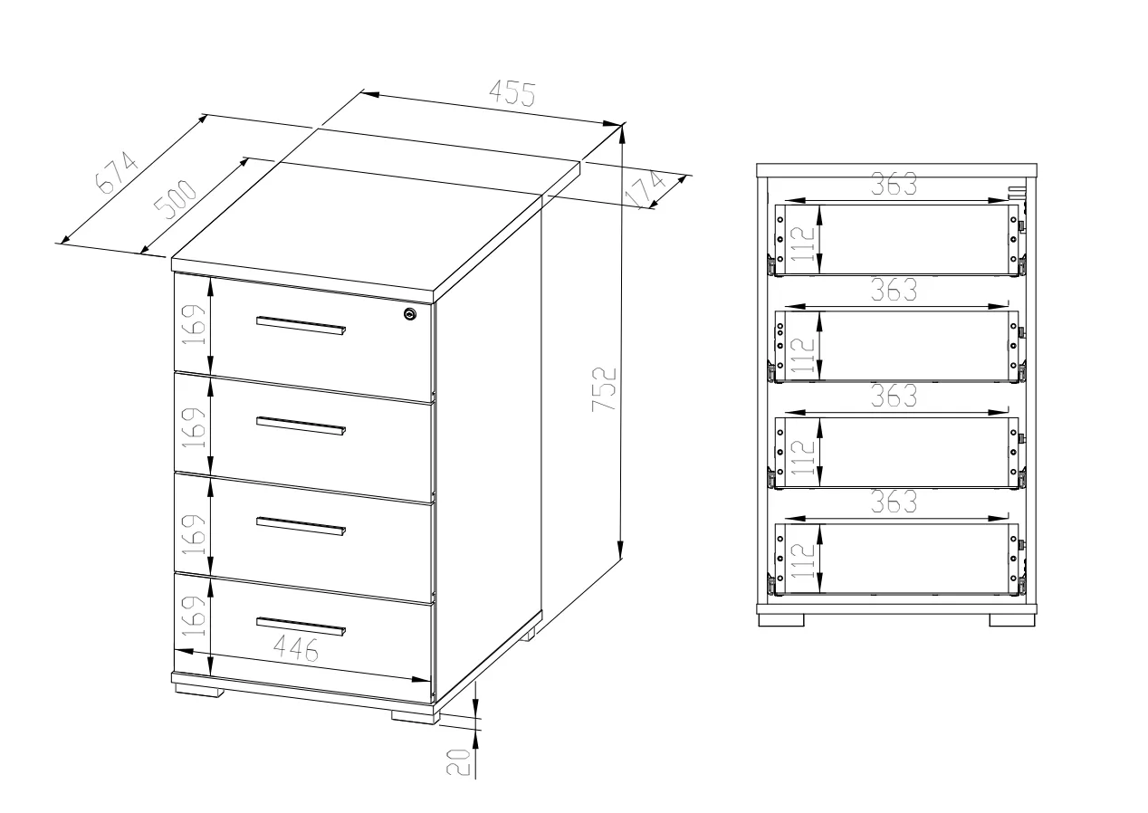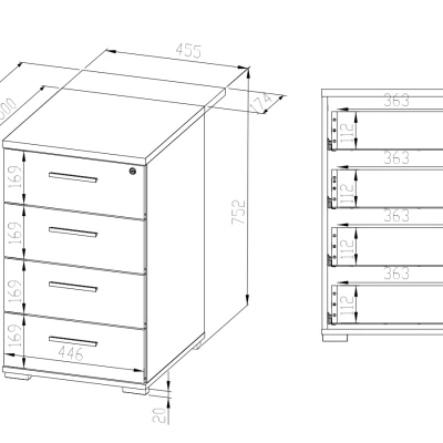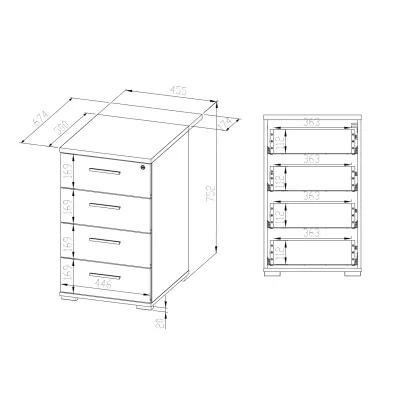 Šuplíkový kontejner s prodlouženou deskou JOLIE se hodí především do kanceláře a to díky možnosti uzamčení šuplíku klíčem. Součástí jsou 4 šuplíky a klíč.