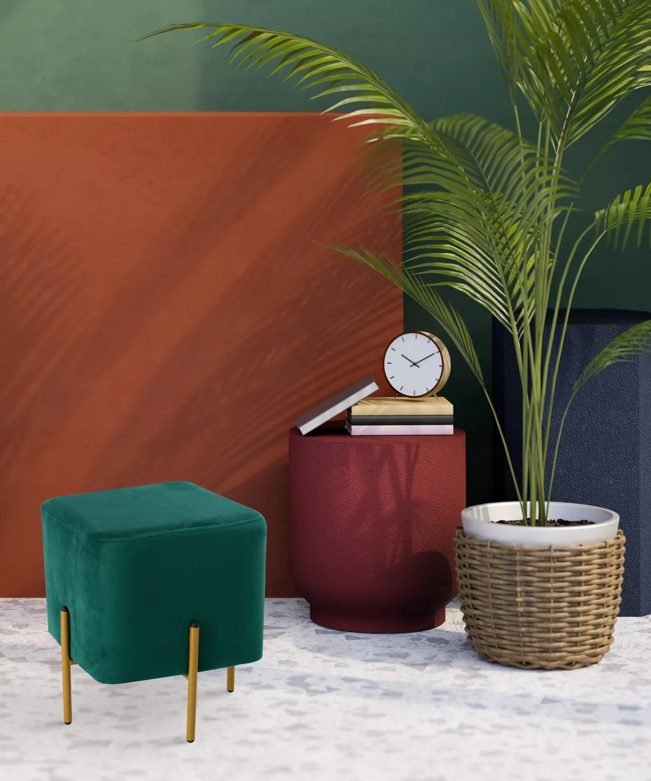 Taburet kostka MADOX vám ve vašem obývacím pokoji nabídne další místo k sezení nebo poslouží jako skvělá podnožka. Kovové nohy ve zlaté barvě dodávají taburetu stabilitu a eleganci.