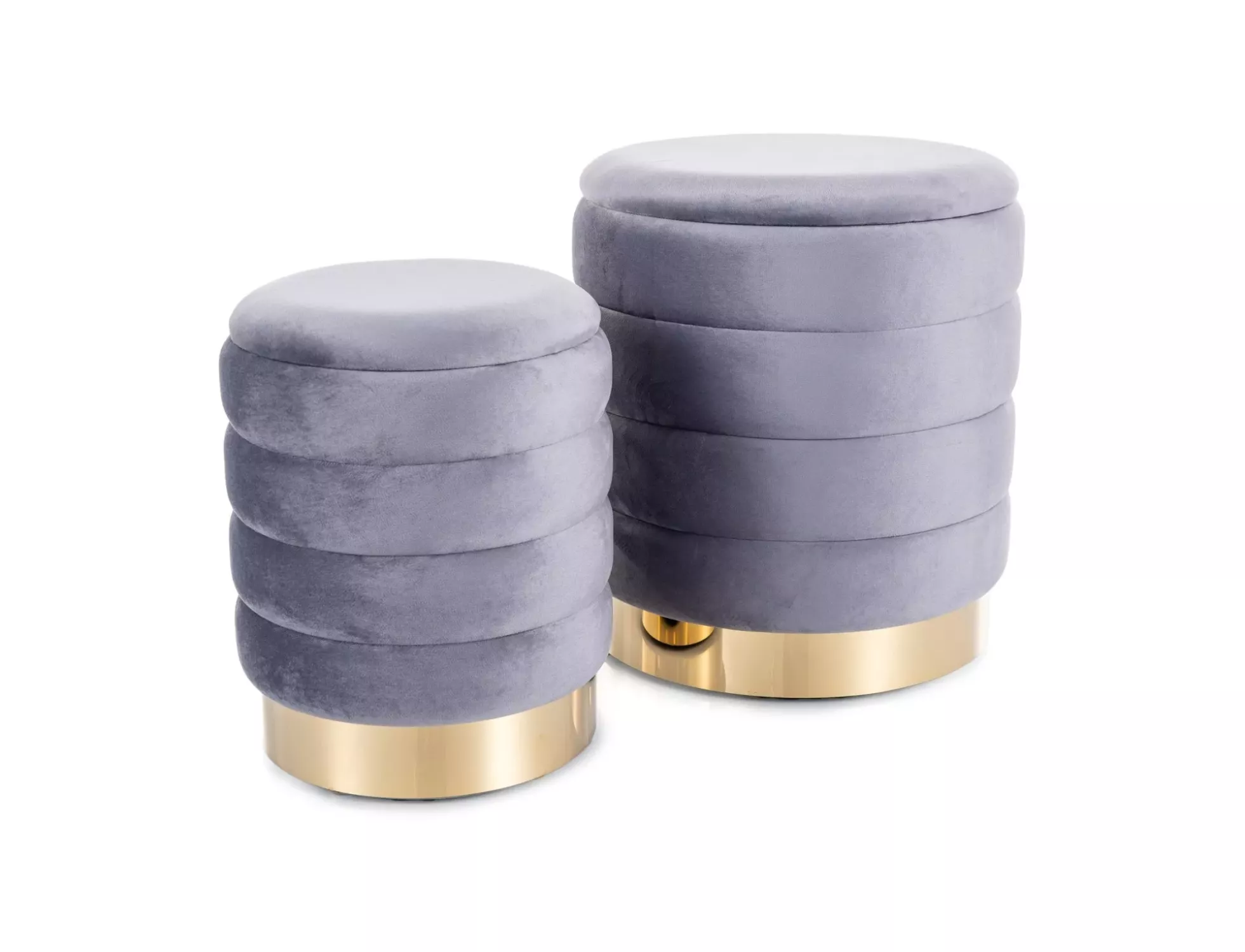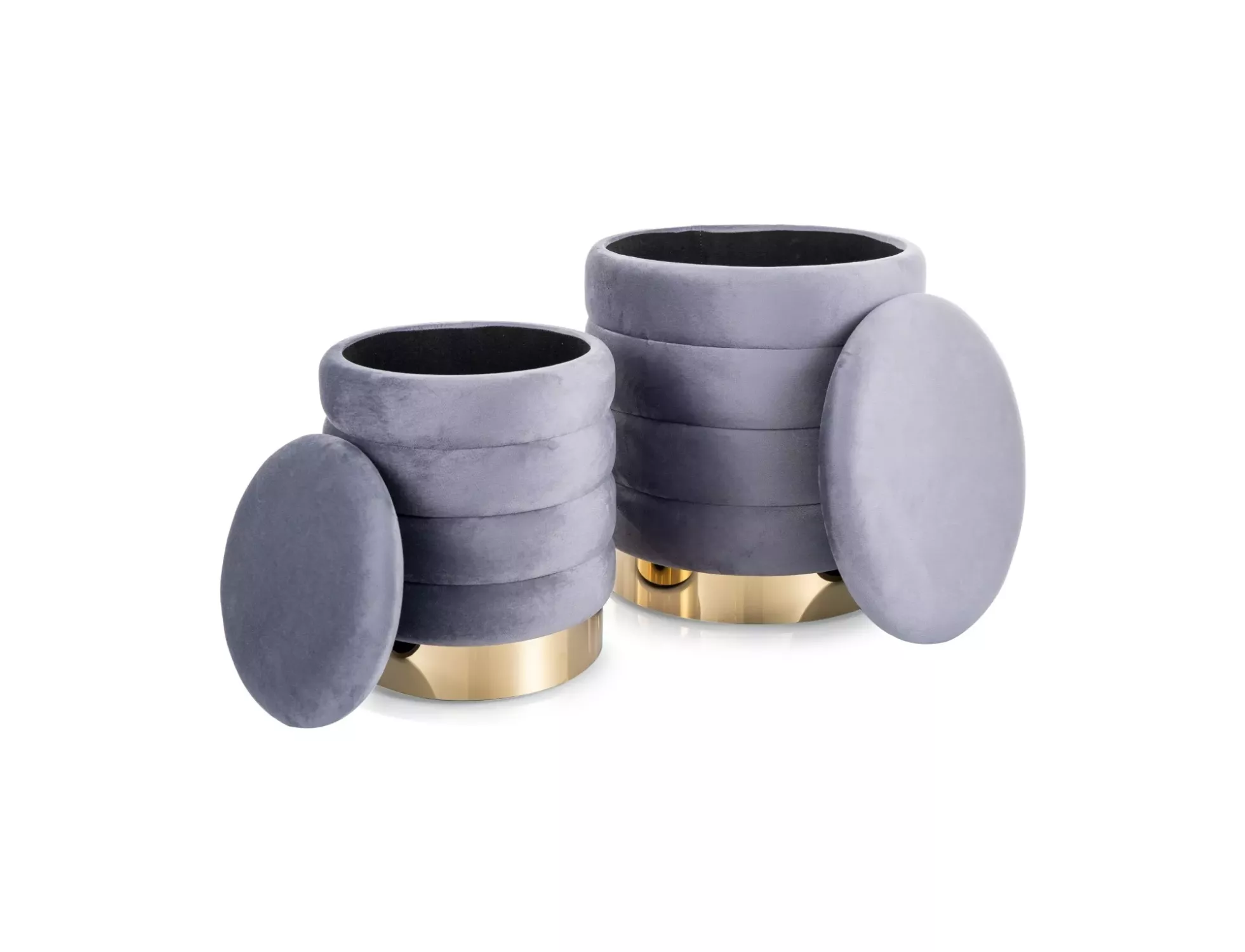 Set 2 taburetů ALEKOS poslouží ve vašem obývacím pokoji jako další místo k sezení nebo jako opěrka na nohy. Taburety disponují úložným prostorem pod odnímatelným sedákem pro uschování menších věcí.