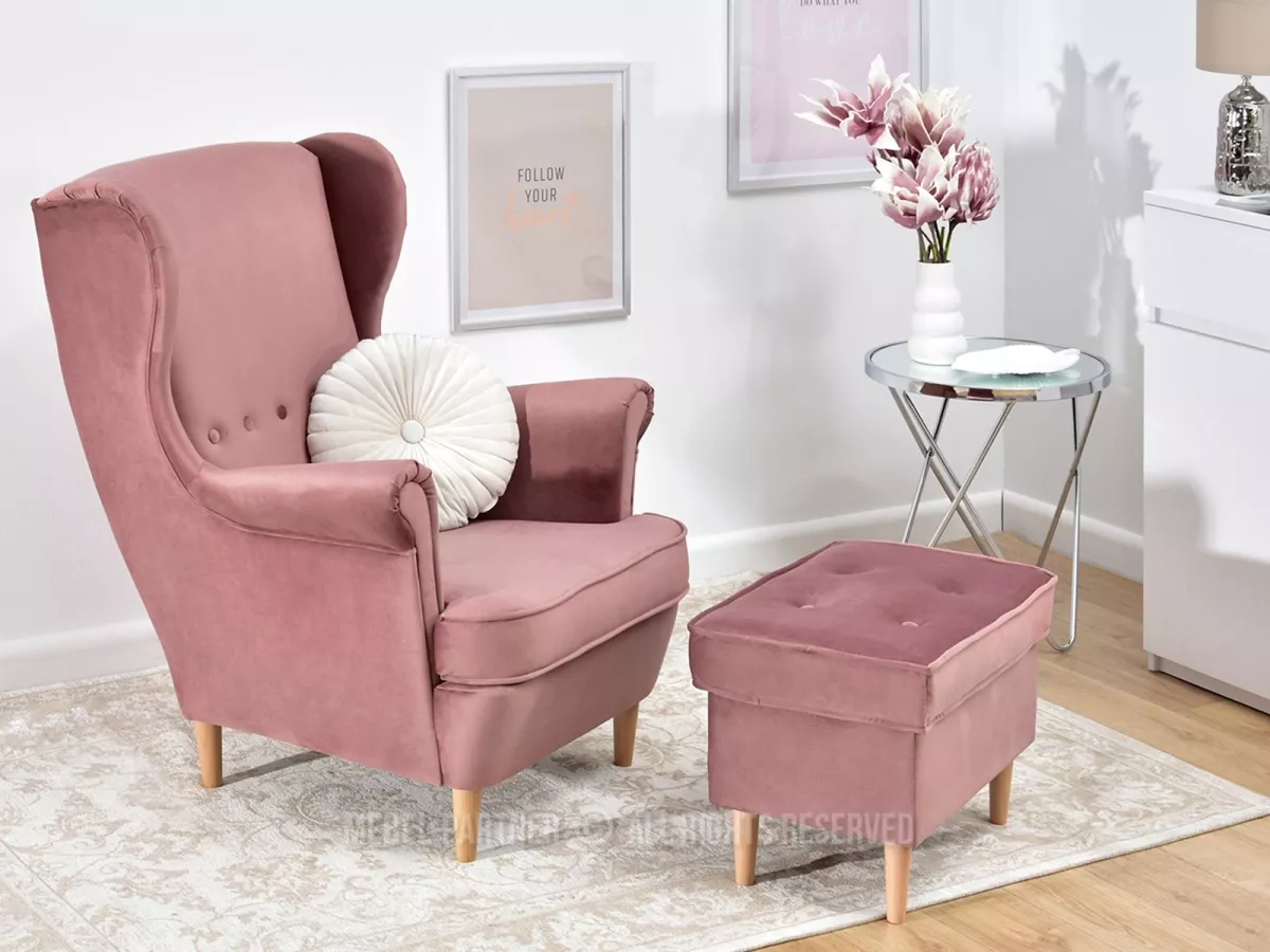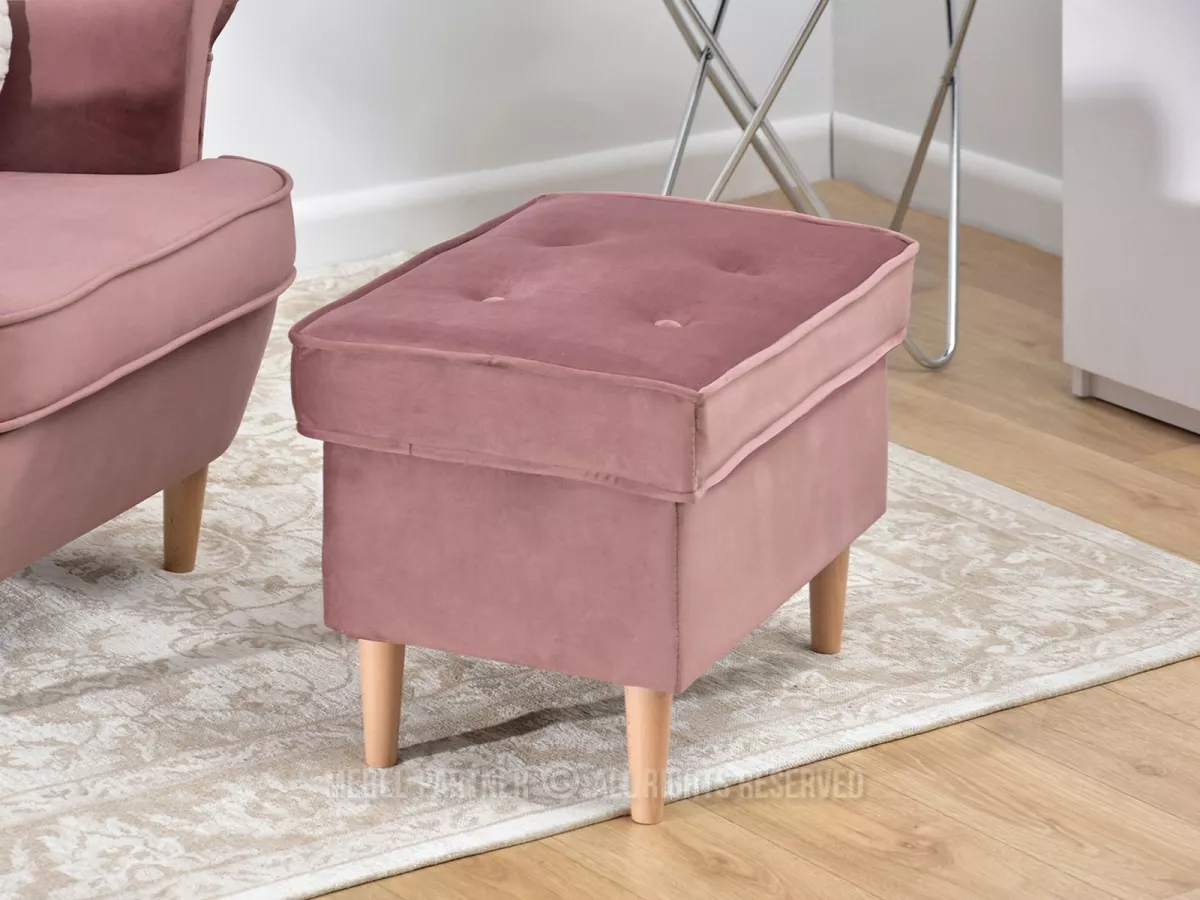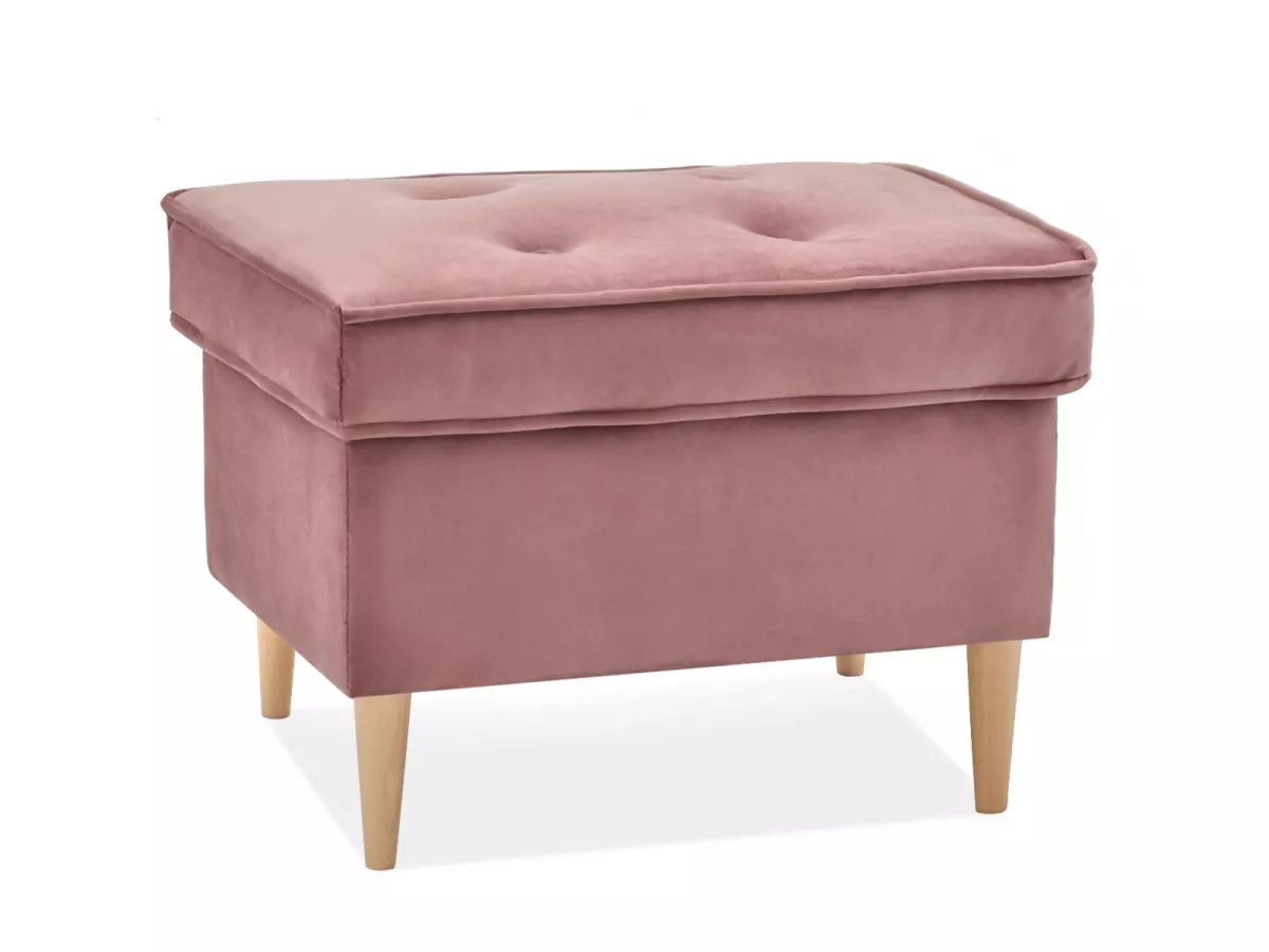 Čalouněný taburet DENIZ - pastelově růžový / buk