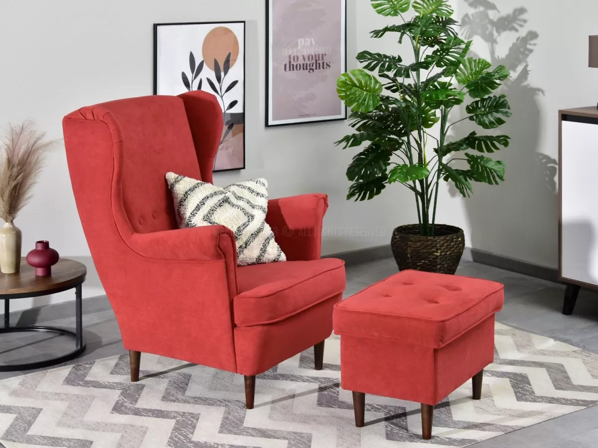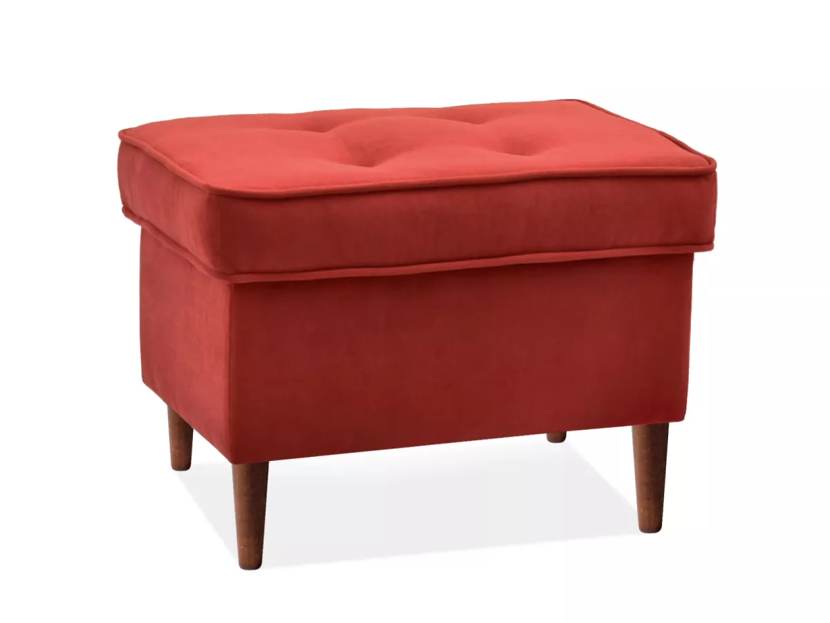 Čalouněný taburet DENIZ - oranžový / ořech