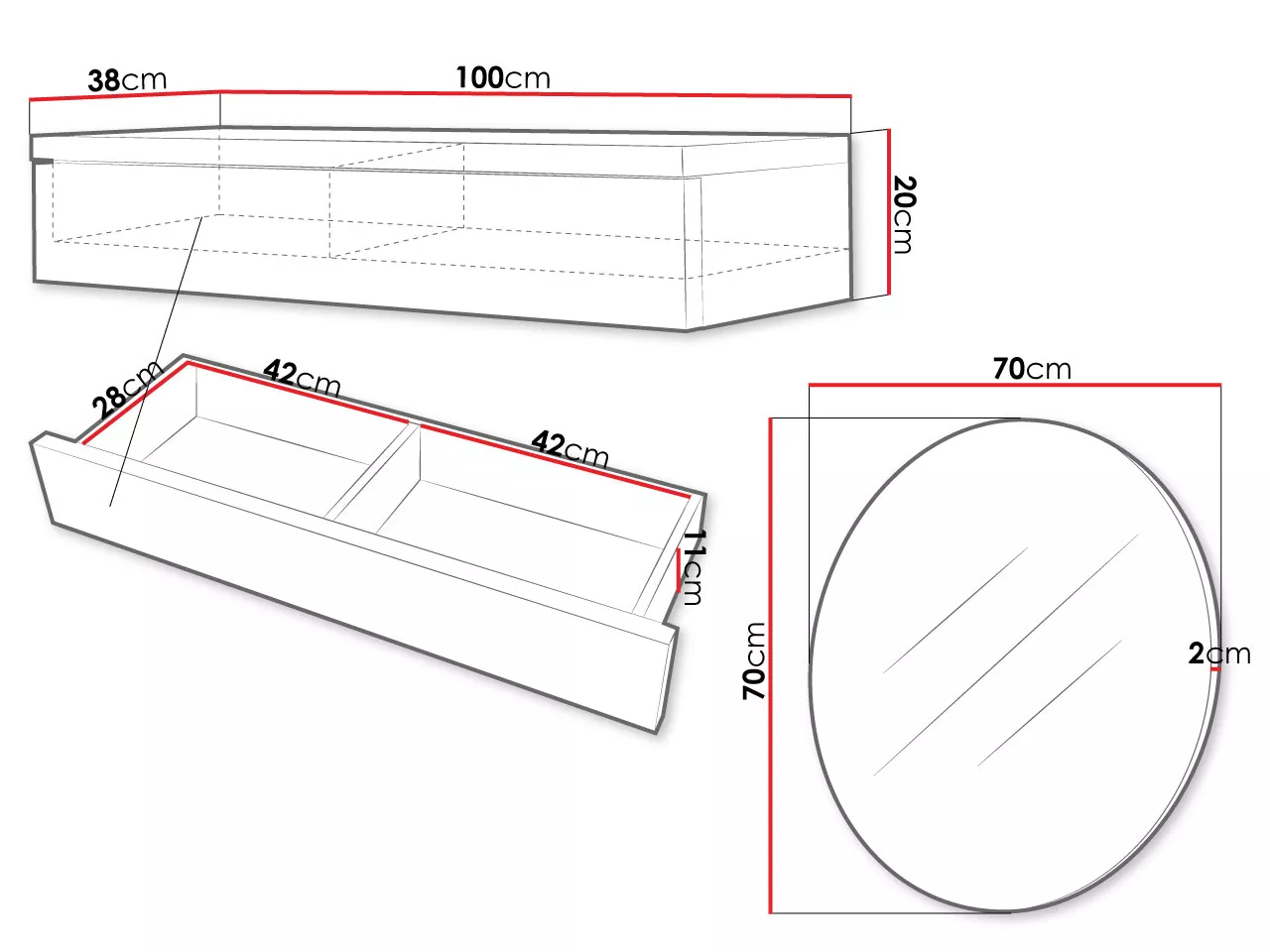 - nástěnné kulaté zrcadlo: 70/70/2 cm