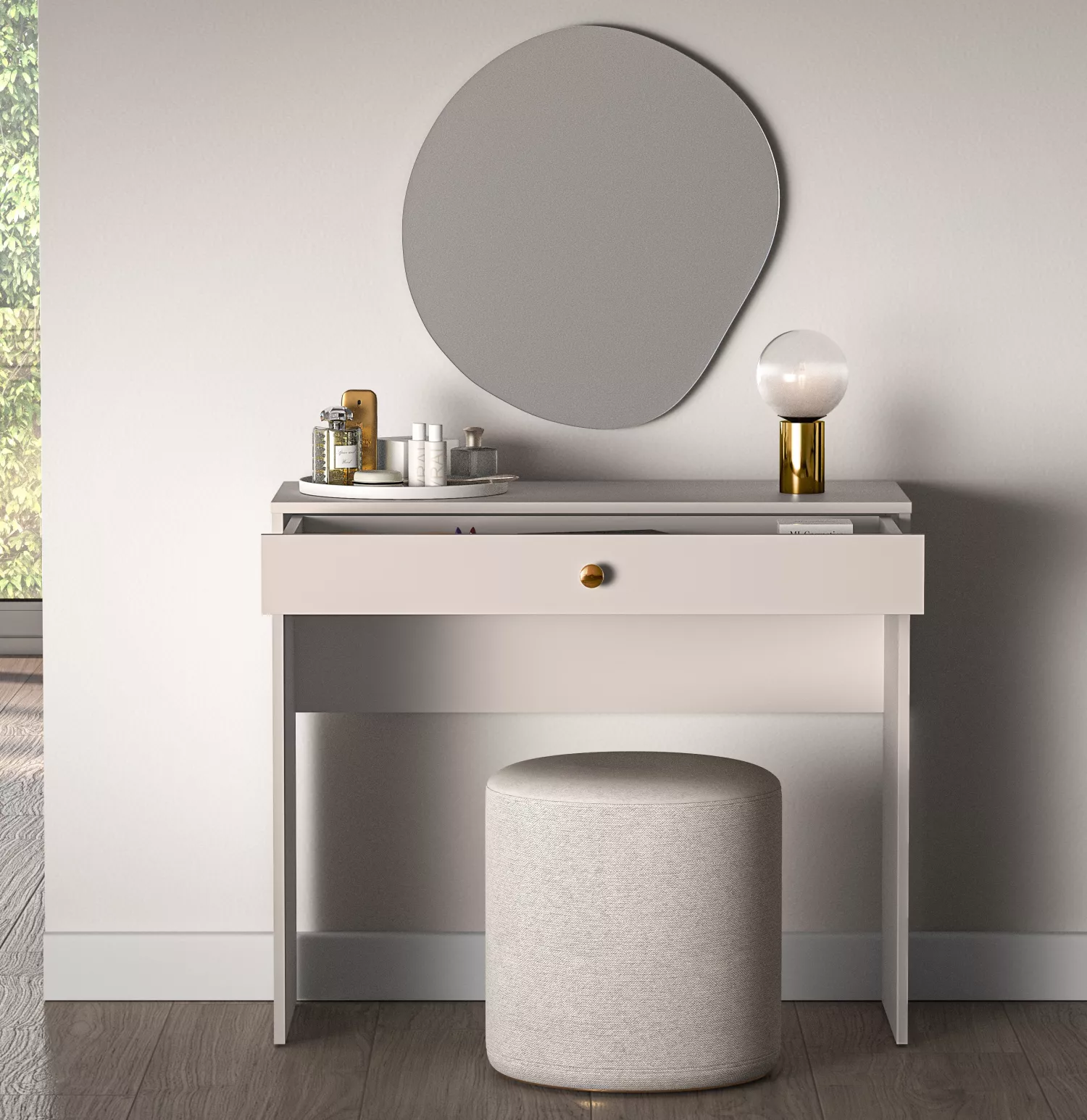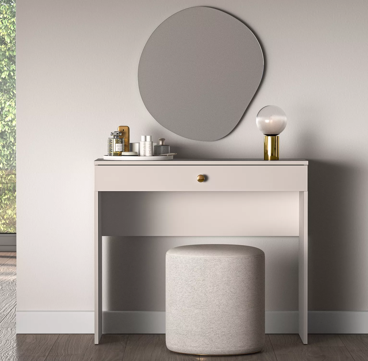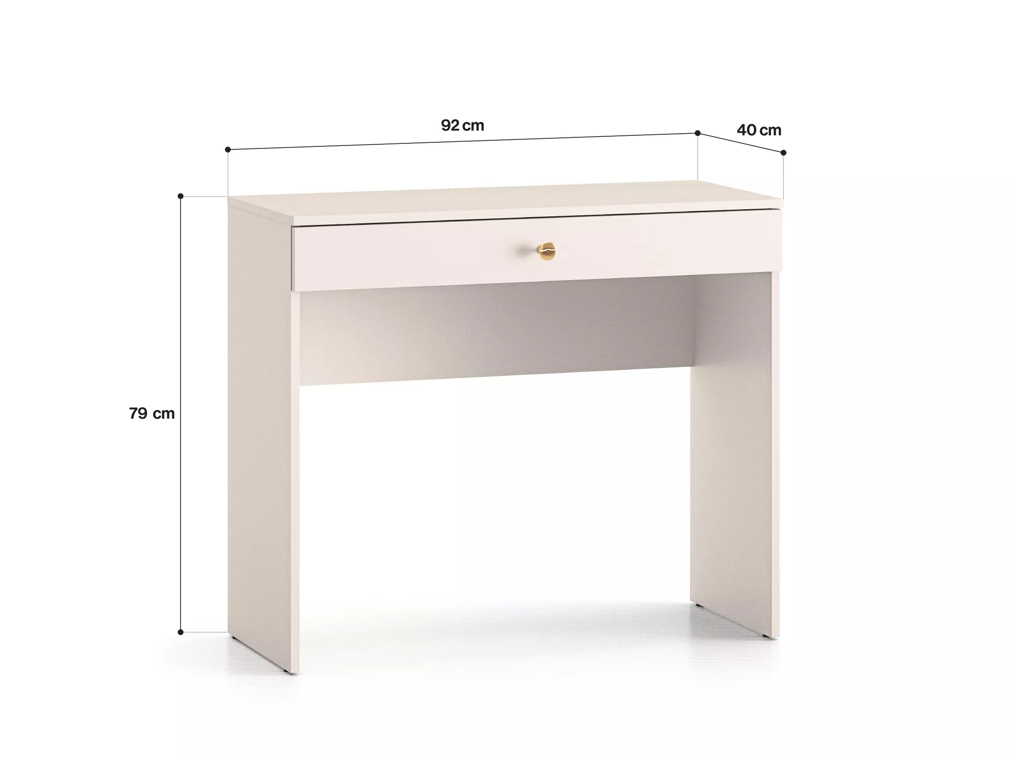 Toaletní stolek LUNA přinese do vašeho domova dotek elegance a funkčnosti. Disponuje šuplíkem pro perfektní uspořádání vašich kosmetických potřeb. Stolek můžete využít také jako konzolový stolek do předsíně či obývacího pokoje.