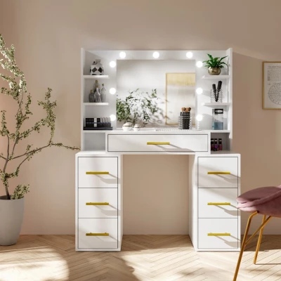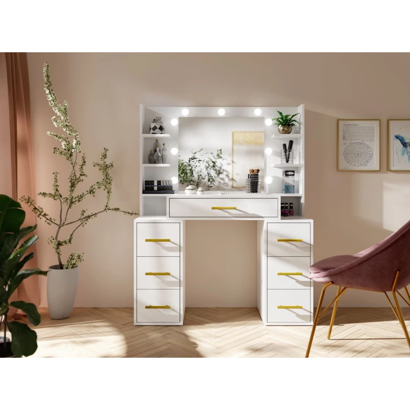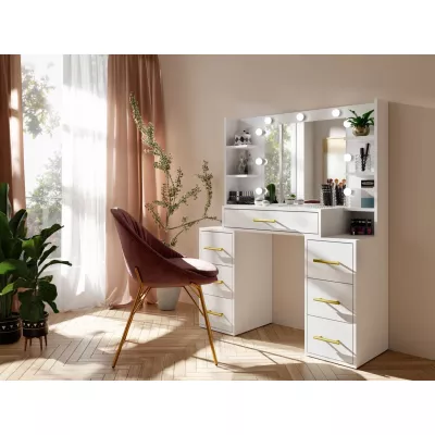 Toaletní stolek se zrcadlem BERTHA - bílý + LED osvětlení ZDARMA