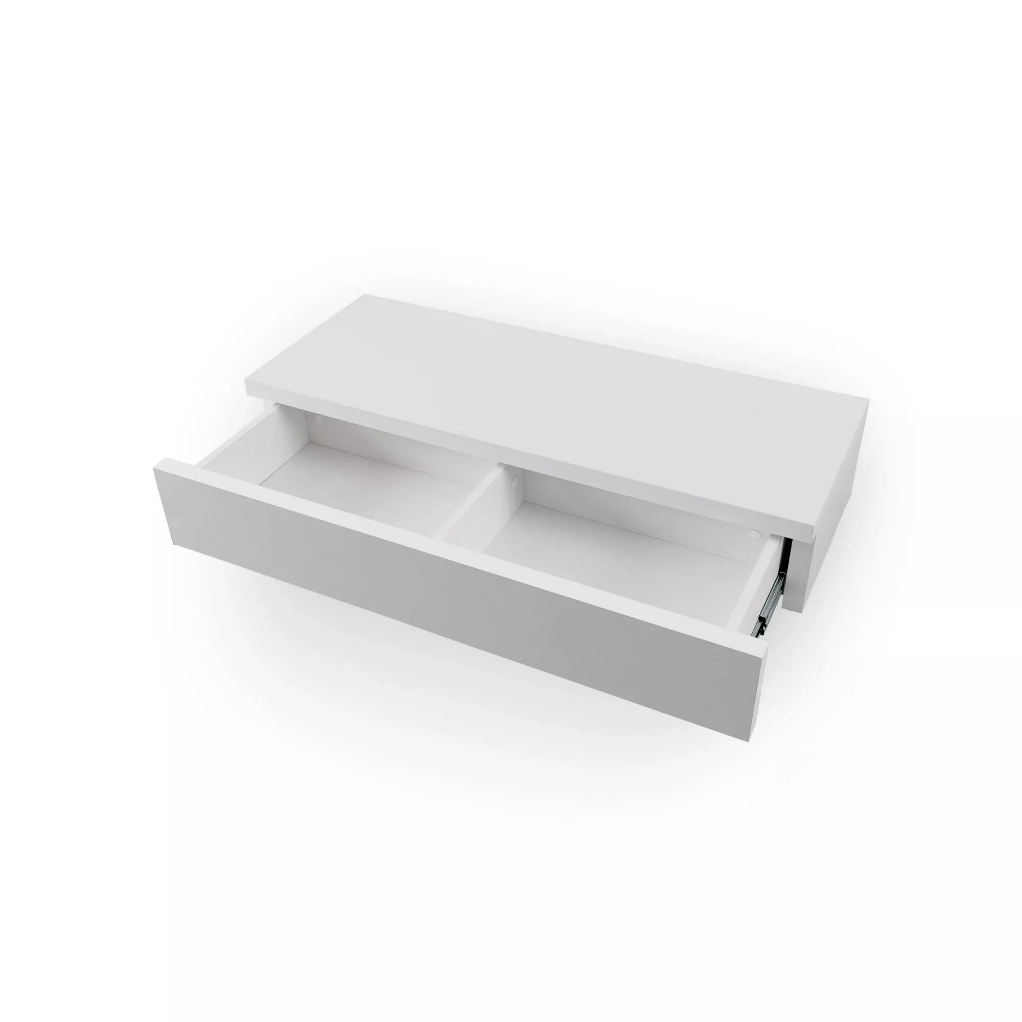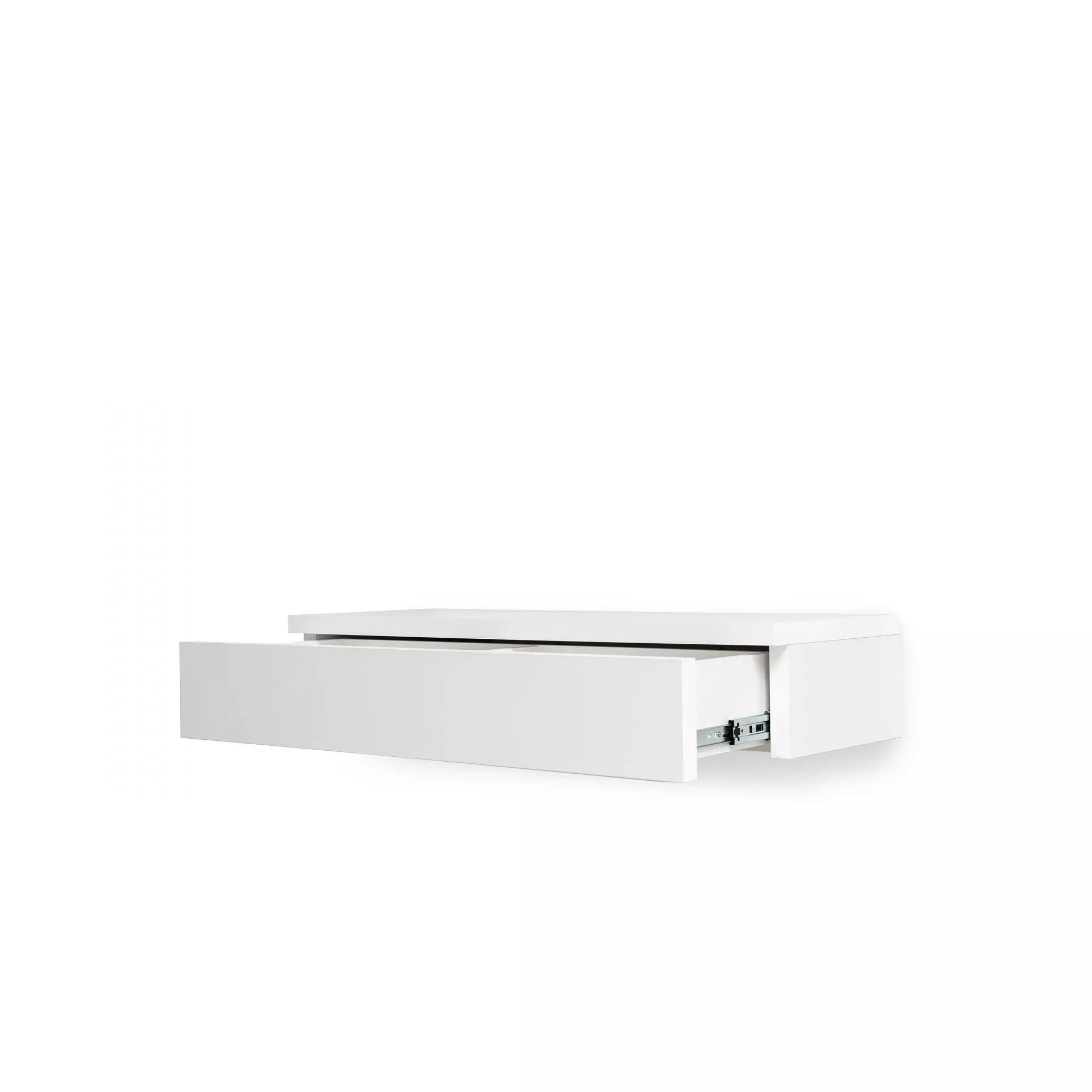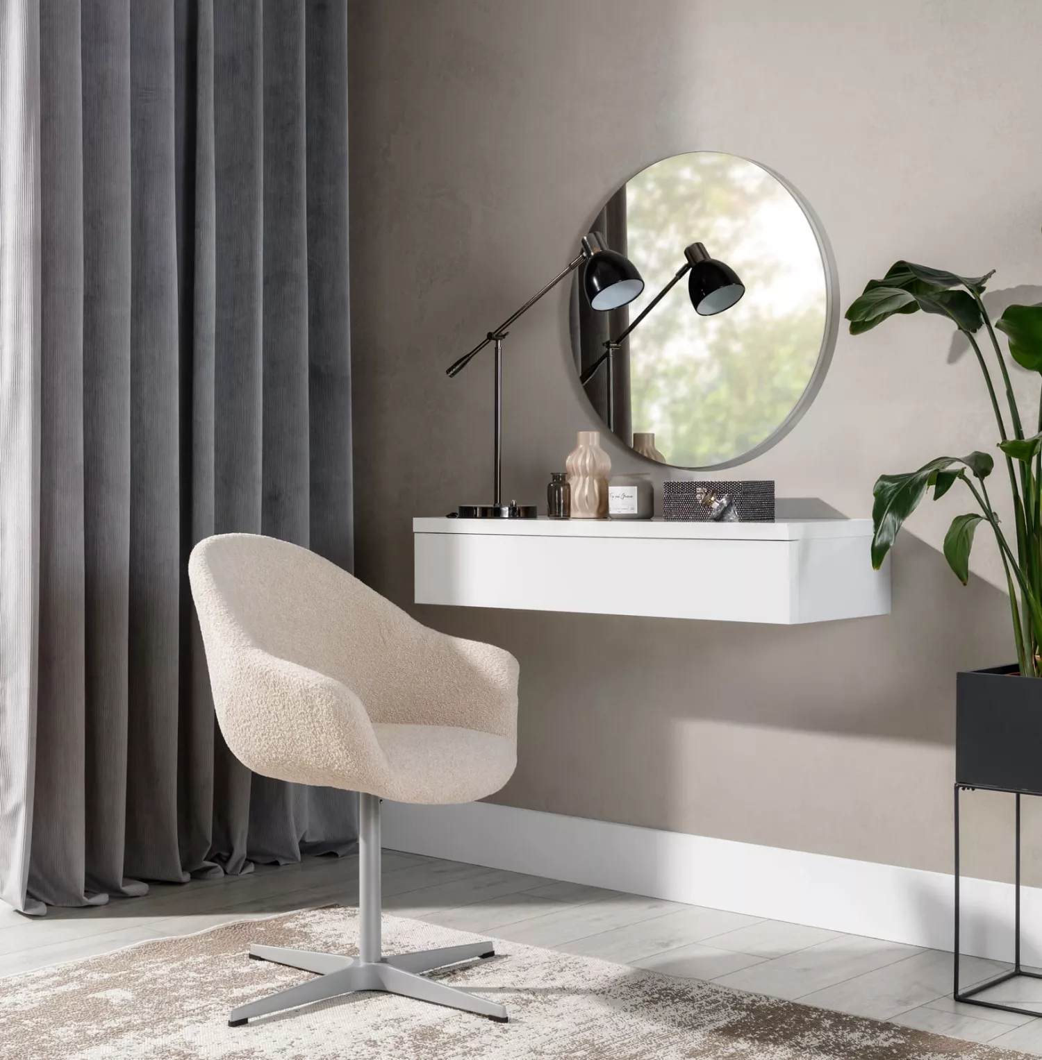 Závěsný toaletní stolek LILLIEN skvěle zapadne do všech moderních a minimalistických interiérů. Disponuje prostorným šuplíkem, kde schováte veškerou kosmetiku nebo dokumenty.