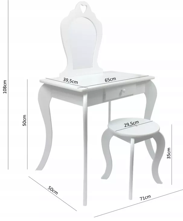 Dětský toaletní stolek se stoličkou MADOX dokonale zapadne do každého dívčího pokoje. Stolek je vybaven zrcadlem a šuplíkem pro uschování věcí.