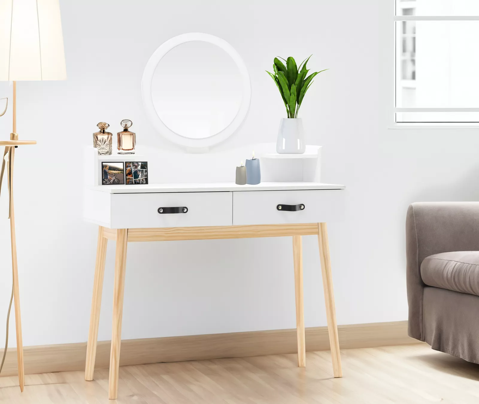 Toaletní stolek se zrcadlem MADOX přinese do vašeho domova dotek elegance a funkčnosti. Disponuje zrcadlem a 2 šuplíky pro perfektní uspořádání vašich kosmetických potřeb.