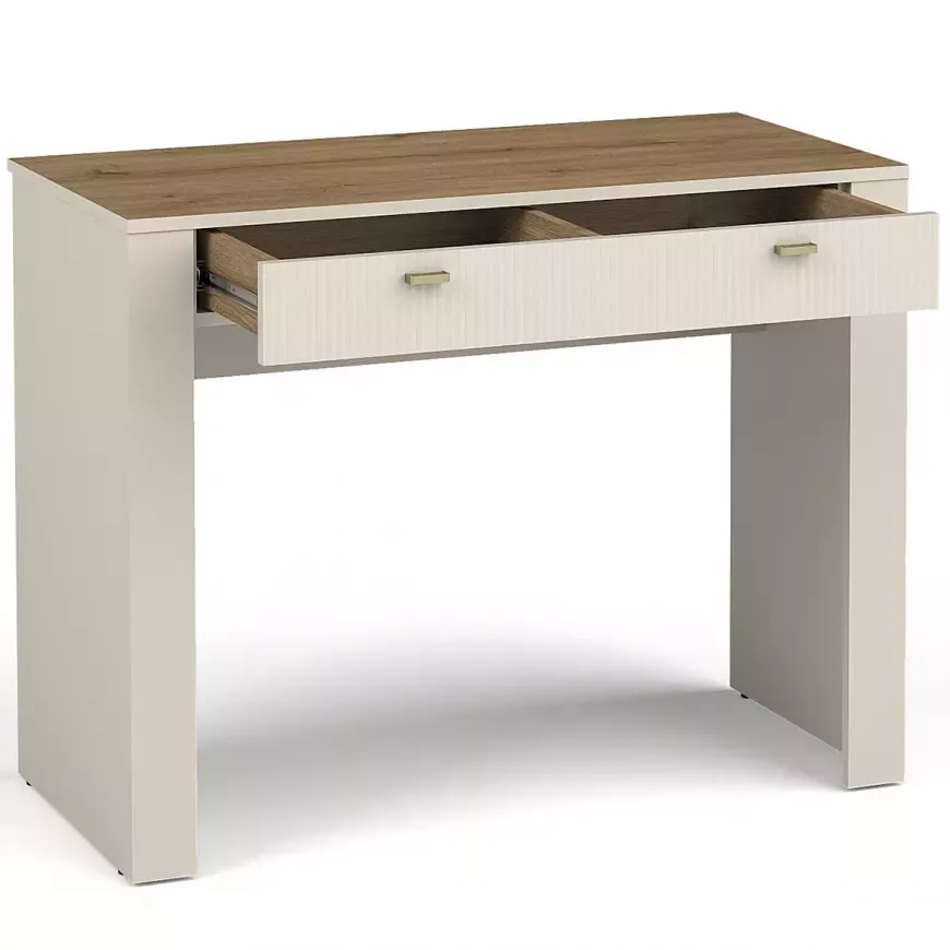 Toaletní stolek AUROVA disponuje prostorným šuplíkem, který pojme veškerou kosmetiku i drobnosti, které chcete mít po ruce. Horní deska v dekoru dubu poskytne dostatek místa pro zrcadlo i oblíbené doplňky.