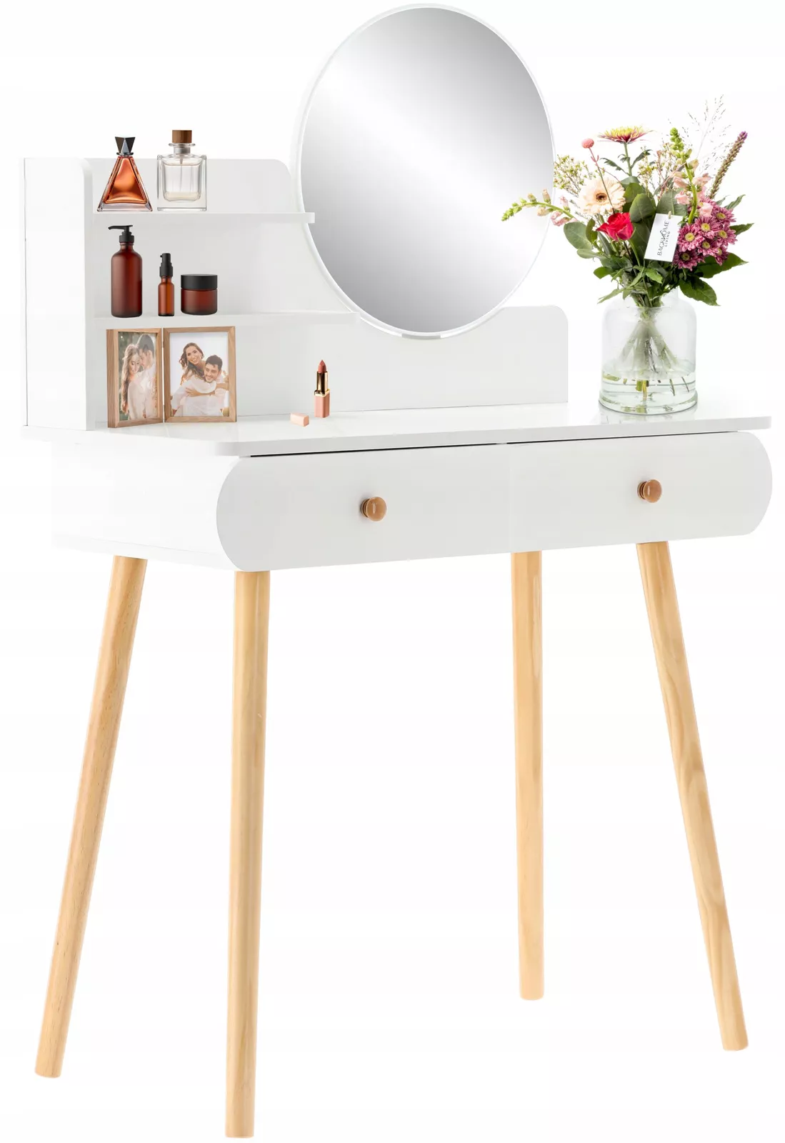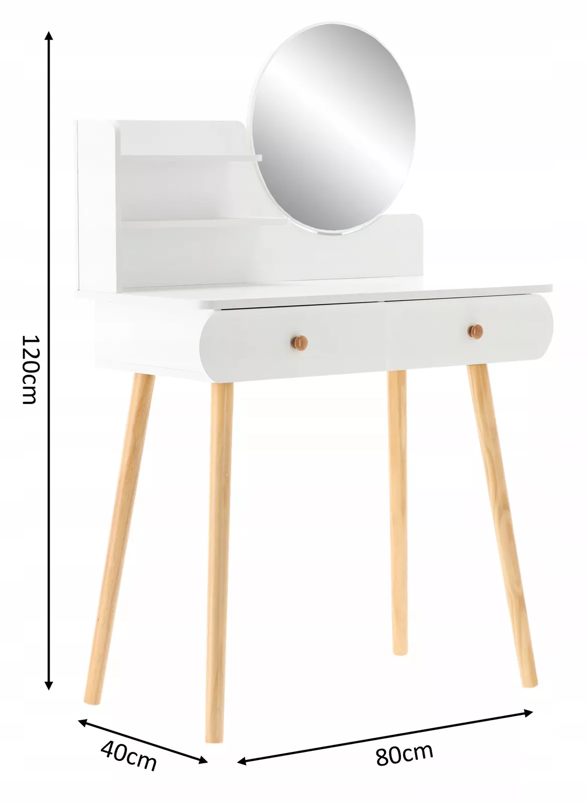 Toaletní stolek s nástavcem MADOX přinese do vašeho domova dotek elegance a funkčnosti. Disponuje zrcadlem, policovým nástavcem a 2 šuplíky pro perfektní uspořádání vašich kosmetických potřeb.