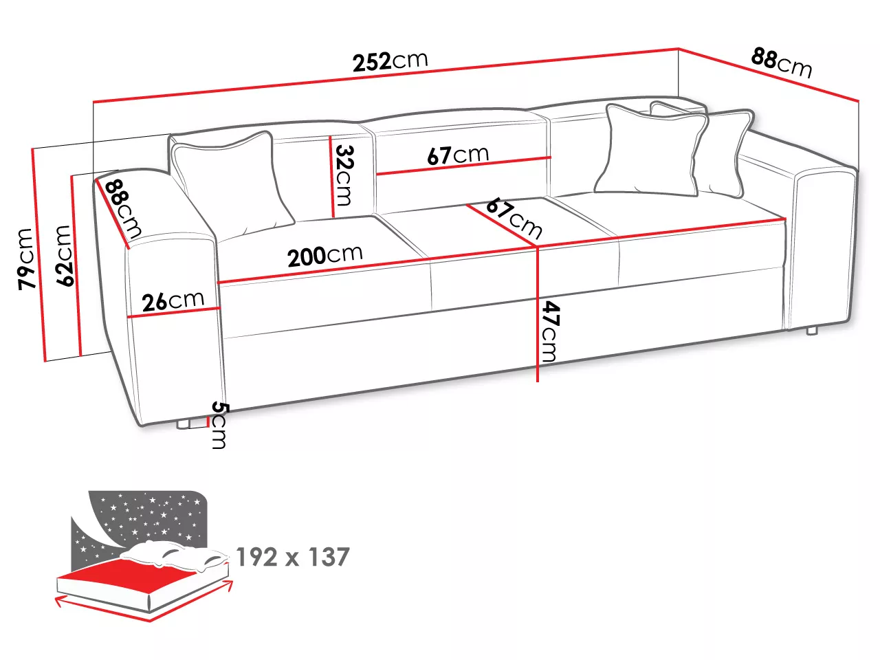 Objevte nový rozměr každodenní relaxace s třímístnou pohovkou BOKSIA. Stylový model je ideální do obývacího pokoje, kde nejen skvěle vypadá, ale také nabízí vysokou praktičnost. Pohovka je rozkládací a díky automatickému mechanismu typu Delfín ji snadno proměníte v pohodlné lůžko pro každodenní spaní. Součástí jsou i polštáře, které zajišťují maximální pohodlí při sledování televize nebo čtení knihy.