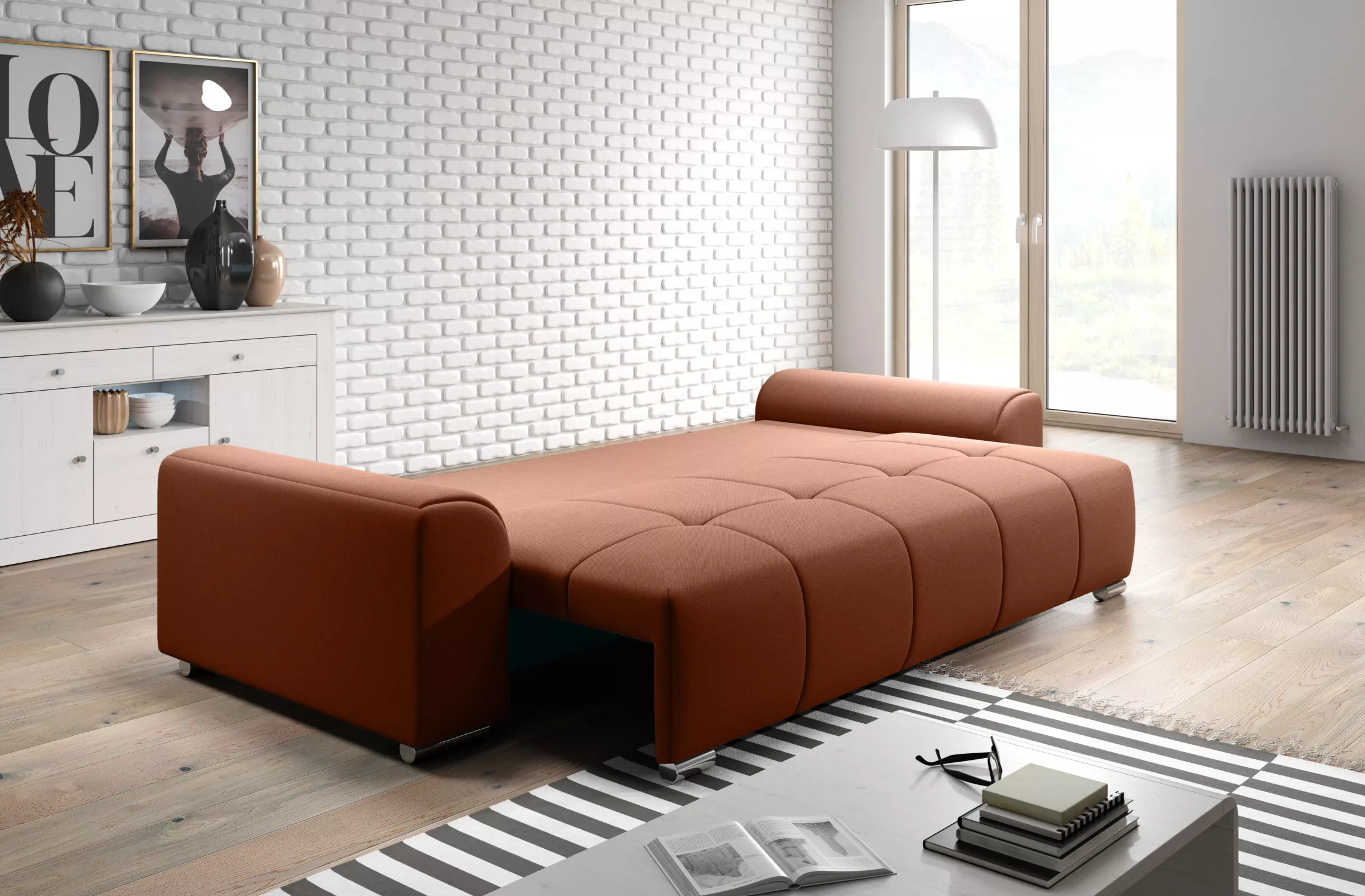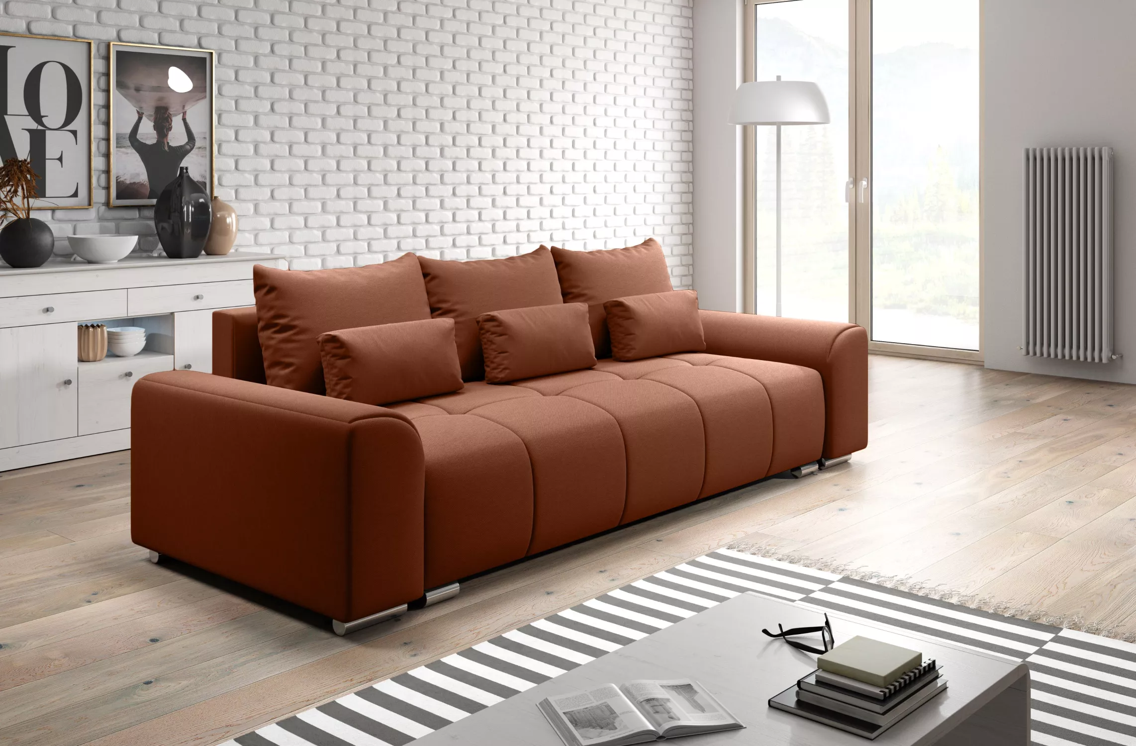 Trojmístná rozkládací pohovka RANDA - cihlová