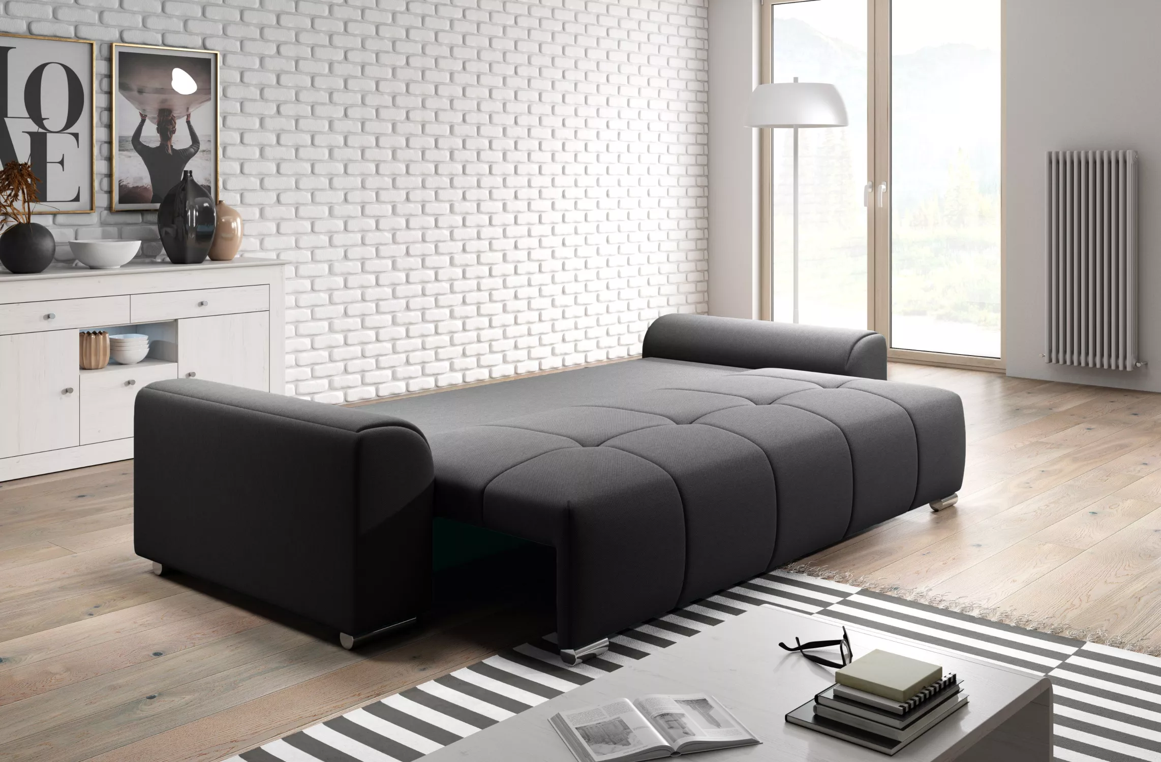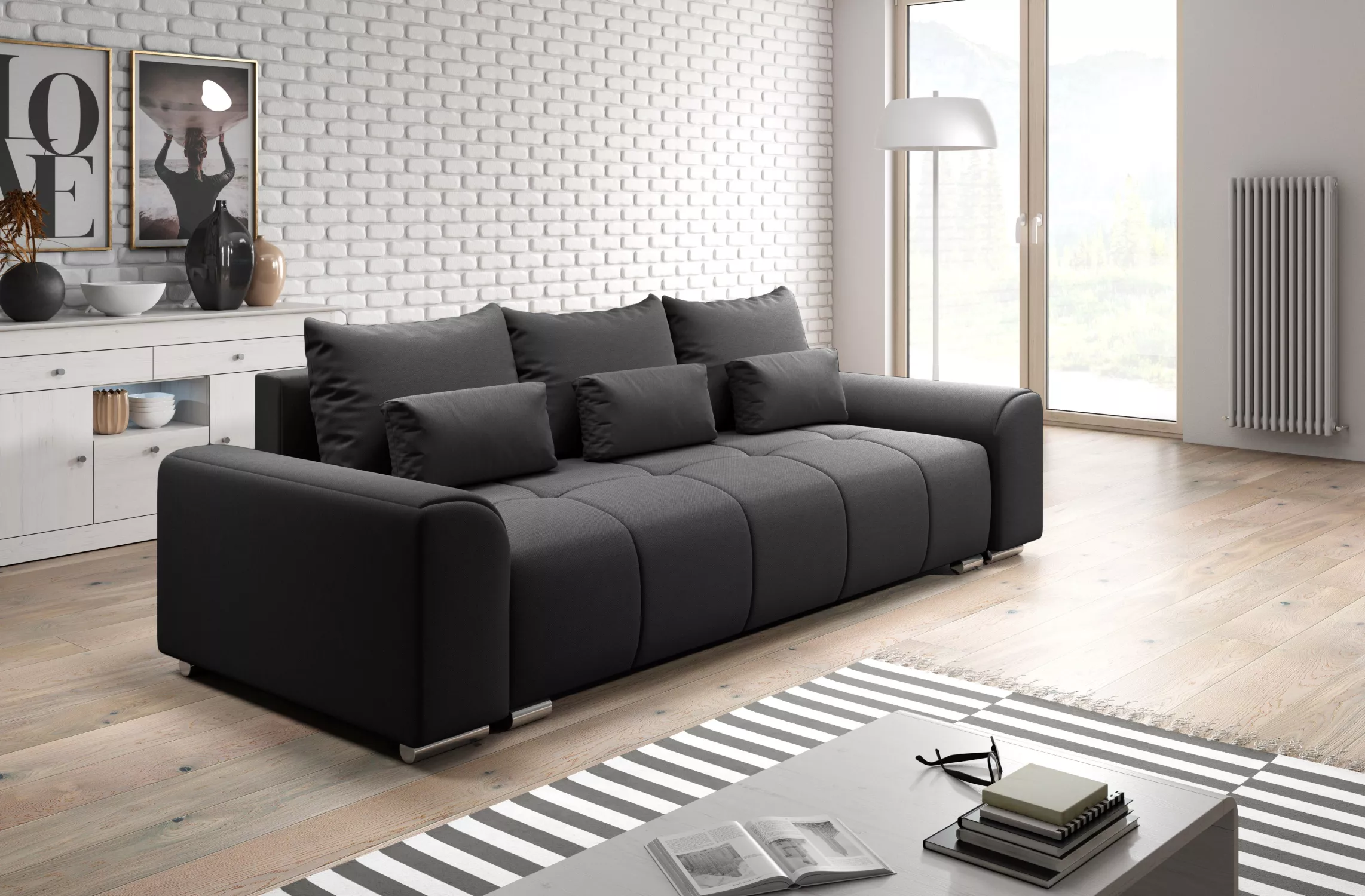Trojmístná rozkládací pohovka RANDA - tmavě šedá