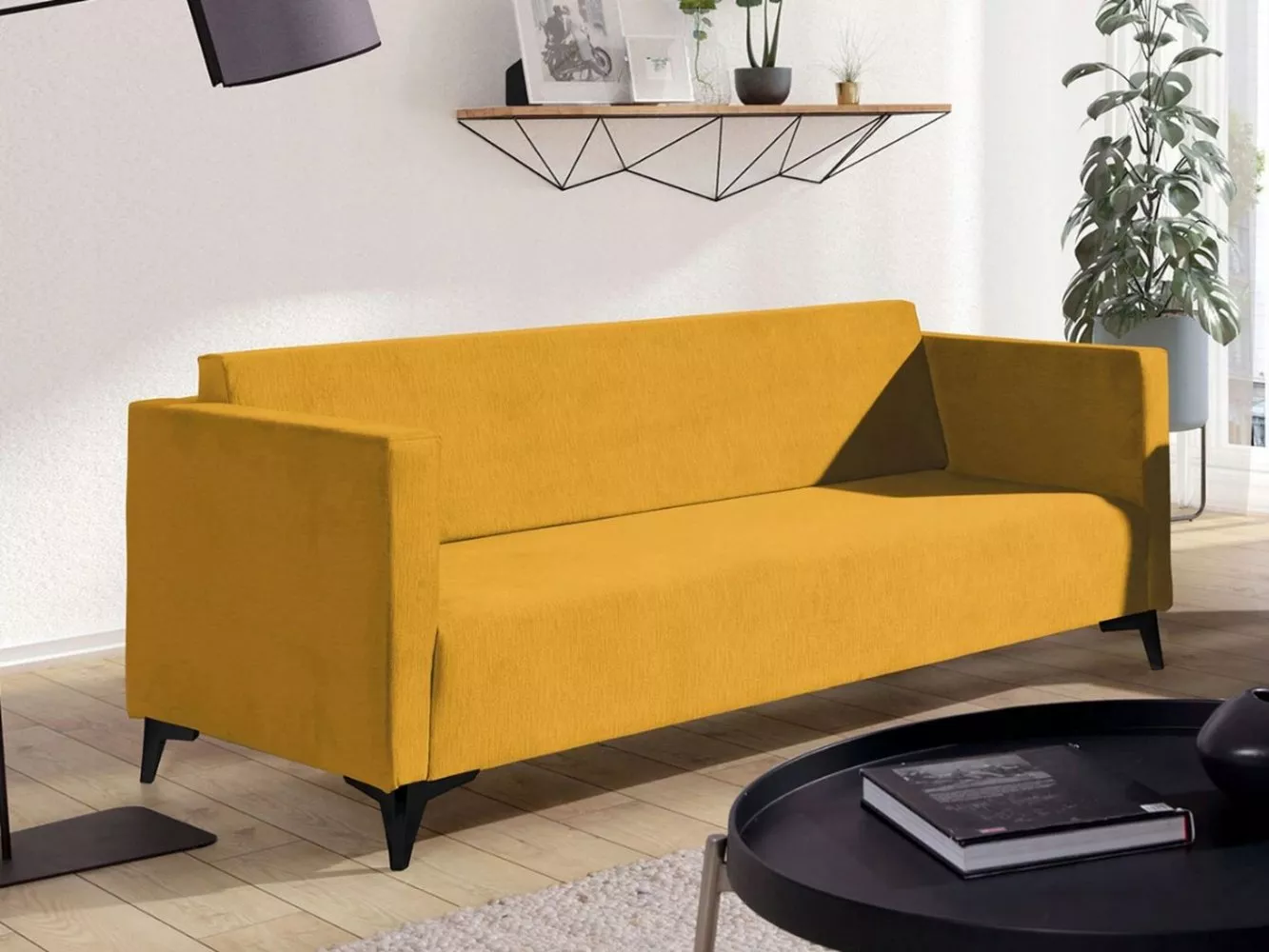 Trojmístná pohovka SIMON - žlutá / nožičky černý lesk