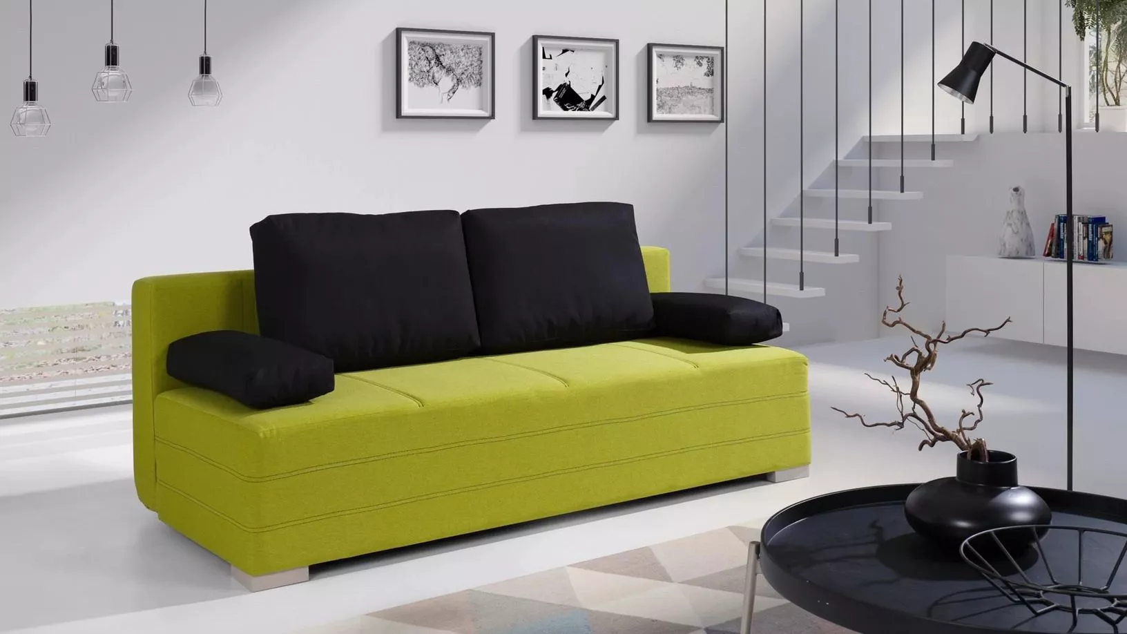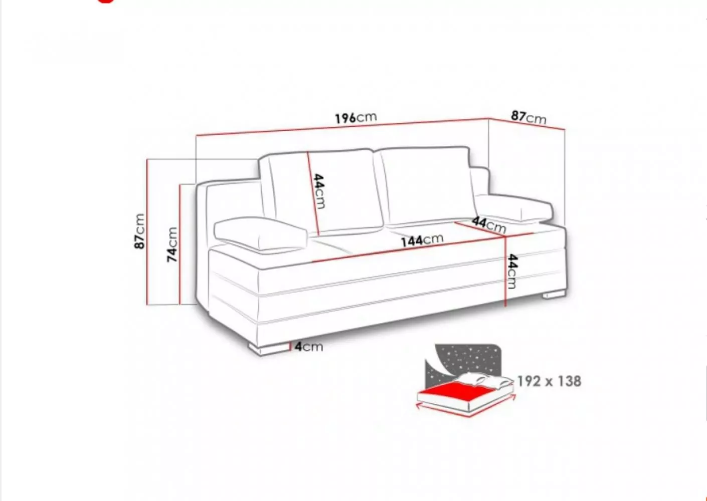 Pohodlná rozkládací sedačka s velkými opěrnými polštářky, kterou lze nechat složenou anebo ji lze rozložit a proměnit na postel pro návštěvu nebo na místo k povalování a oddechu. Ve spodní částí rozkládací sedačky je úložný prostor, do kterého lze uložit lůžkoviny nebo deky.