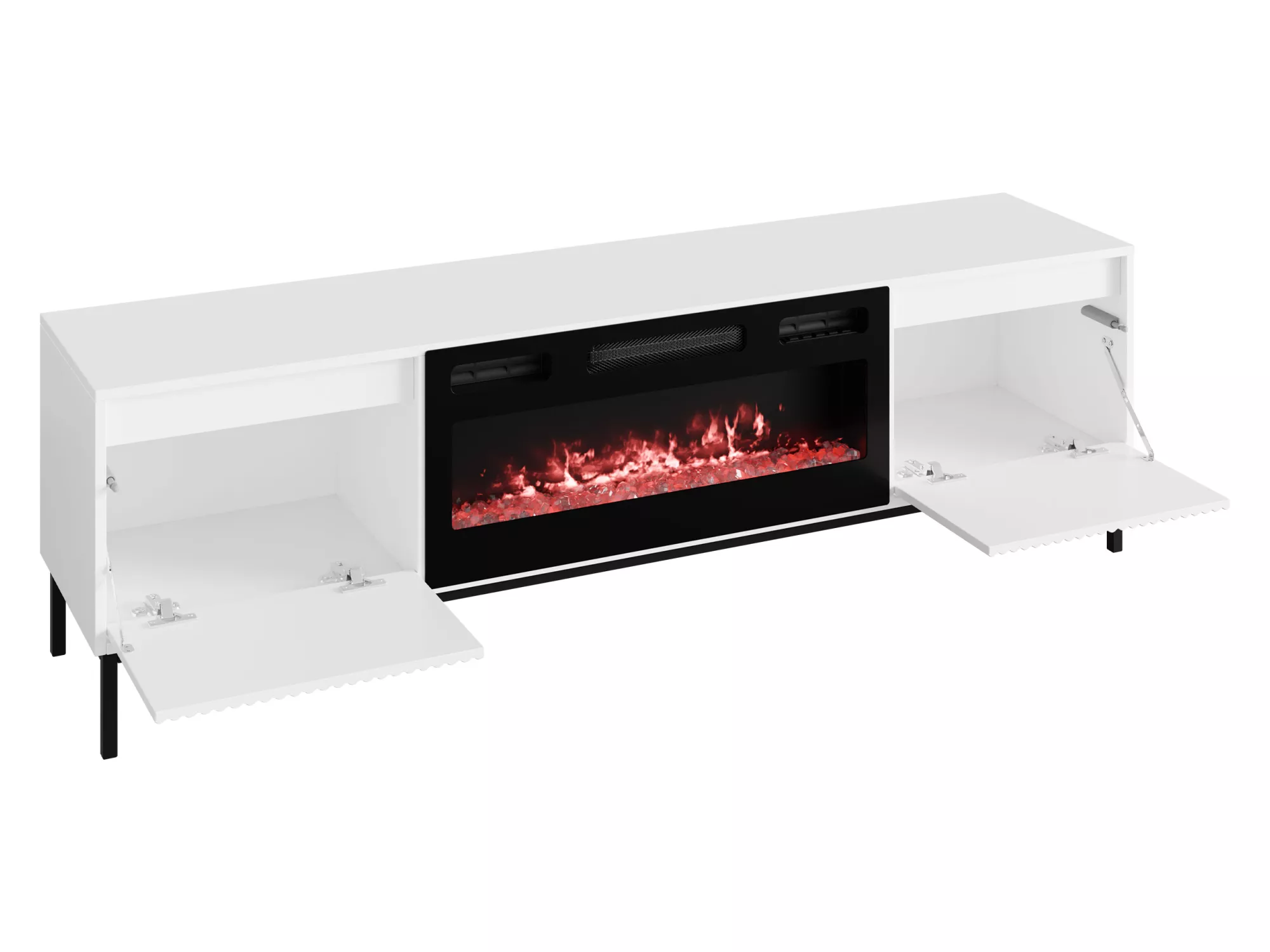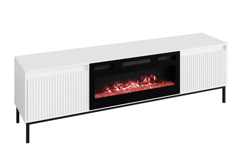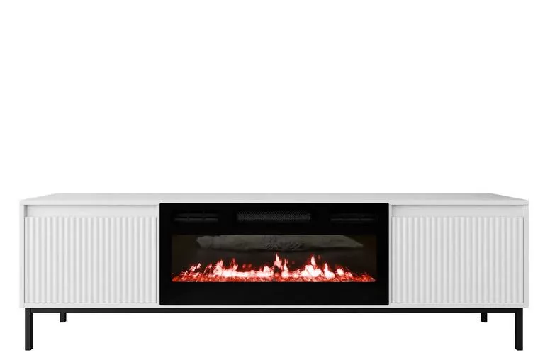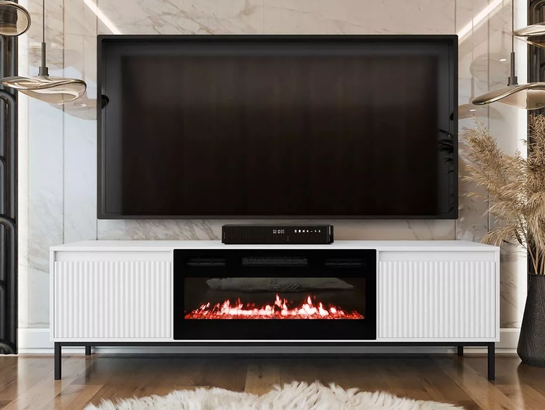 TV stolek REMY spojuje elegantní design s inovací díky vestavěnému elektrickému krbu, který nejen zahřeje, ale zároveň vytvoří útulnou a relaxační atmosféru. Efekt plápolajícího ohně dodá interiéru jedinečné kouzlo bez nutnosti složité instalace či údržby. Stylová frézovaná dvířka podtrhují moderní vzhled, zatímco velký úložný prostor a široká horní deska nabízejí praktické využití.