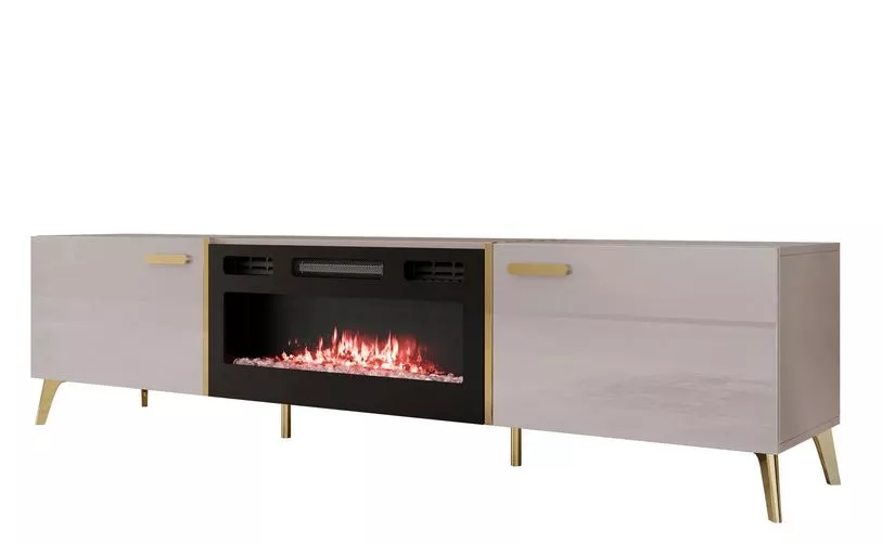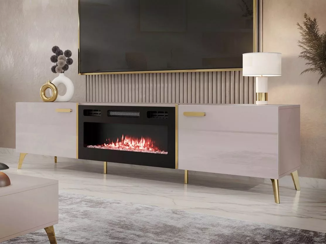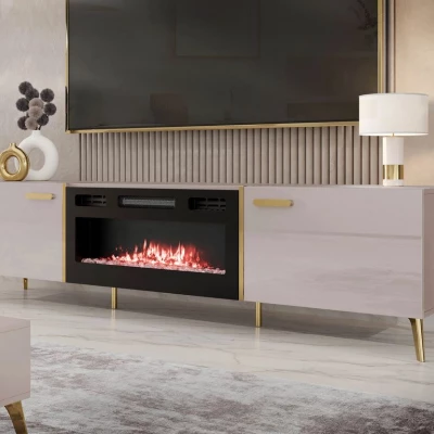 TV stolek s elektrickým krbem TANTES - kašmír / lesklý kašmírový