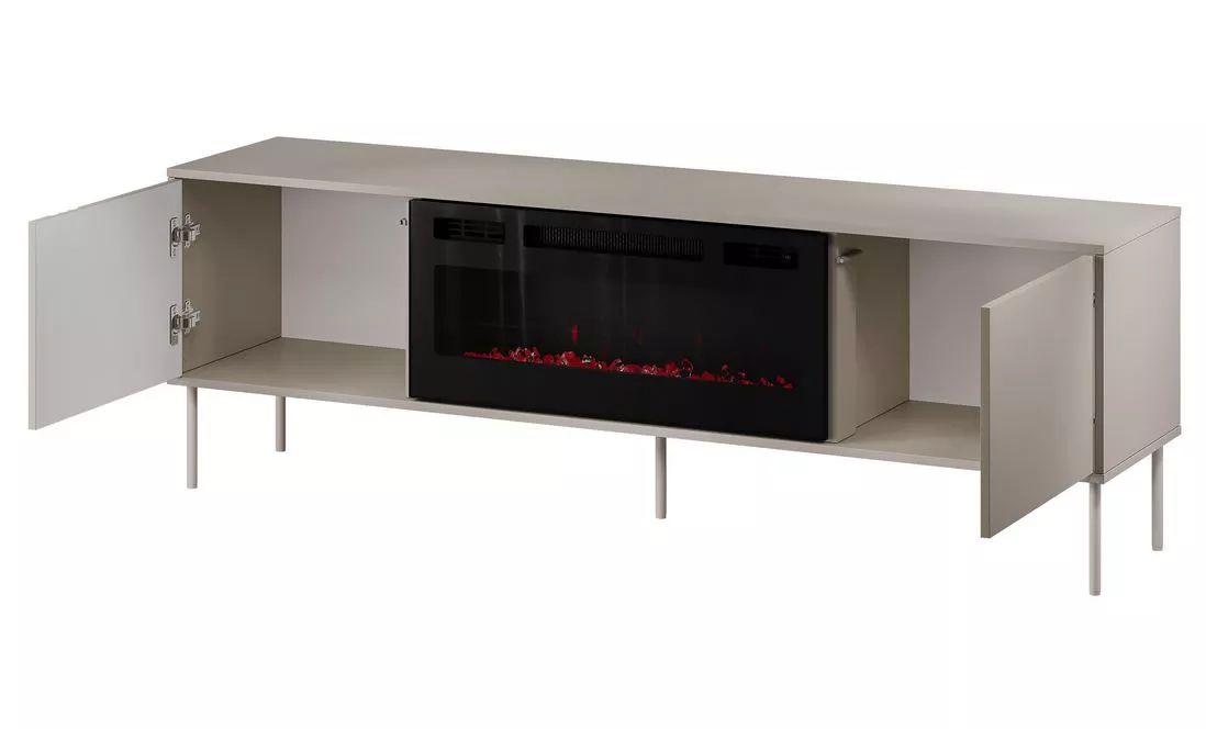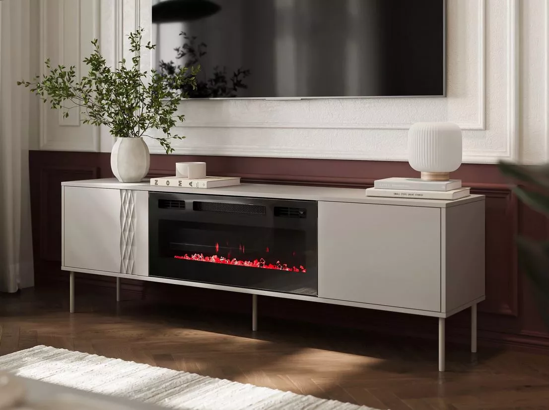 Televizní stolek s elektrickým krbem HARTSELE - béžový