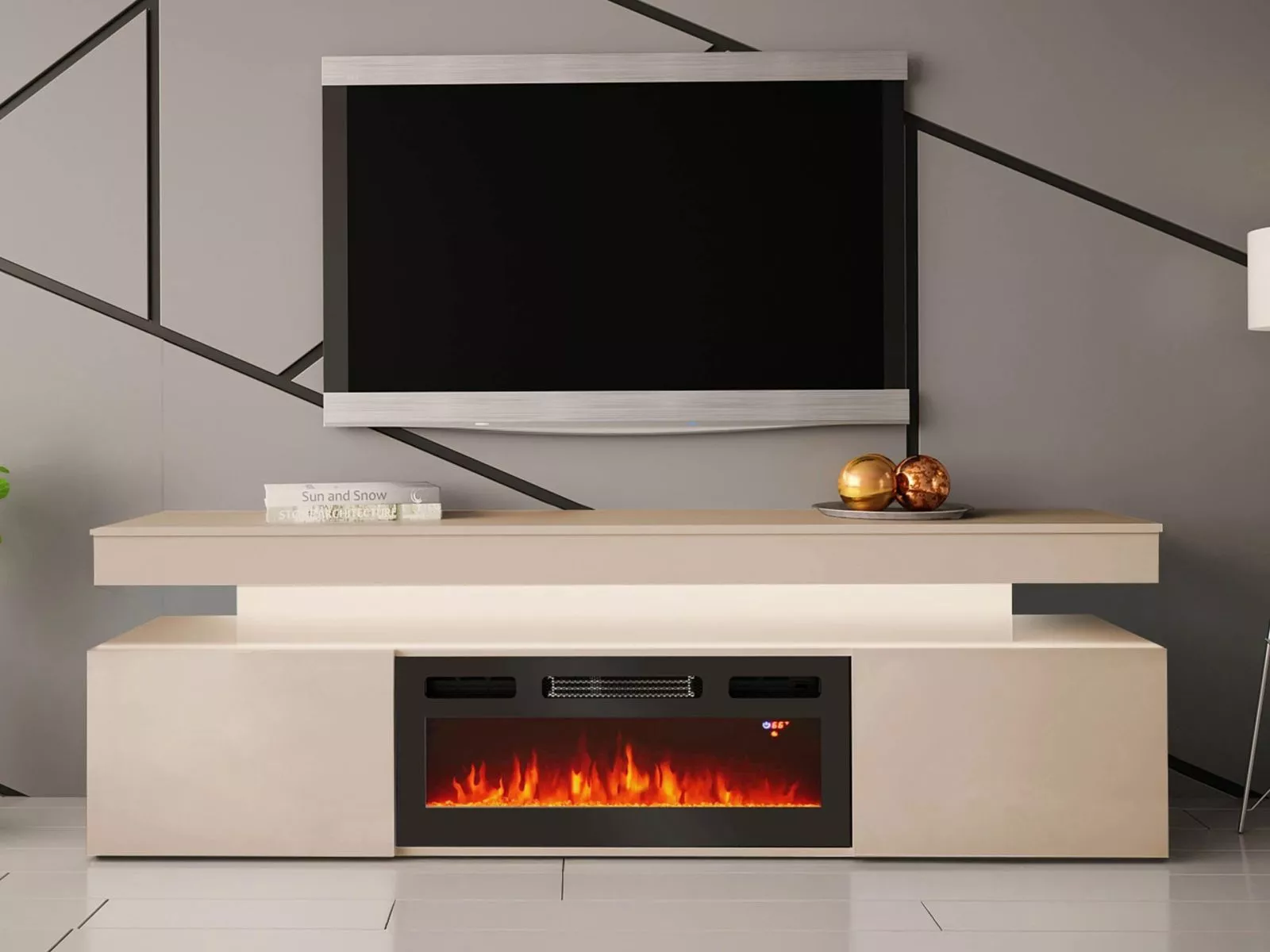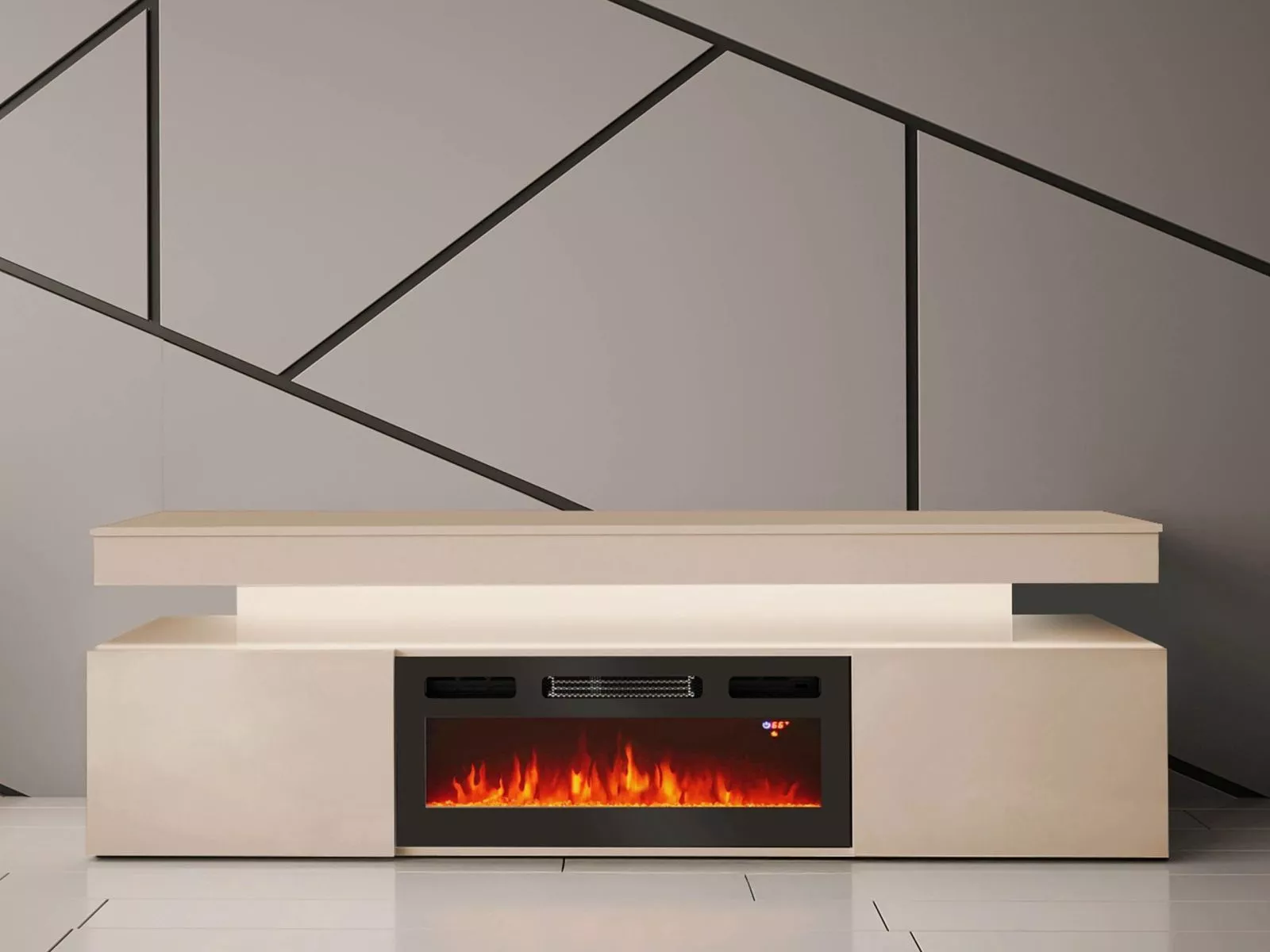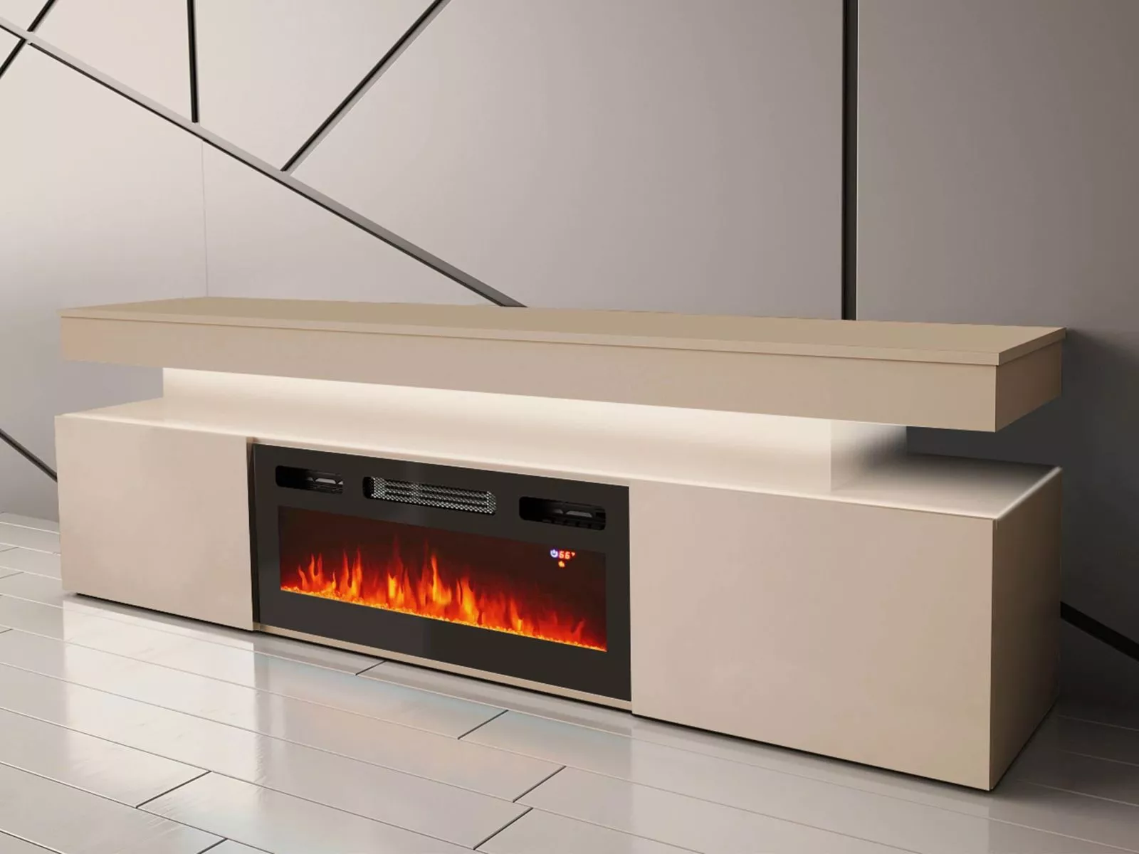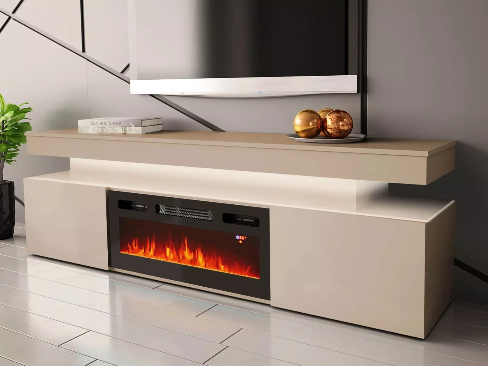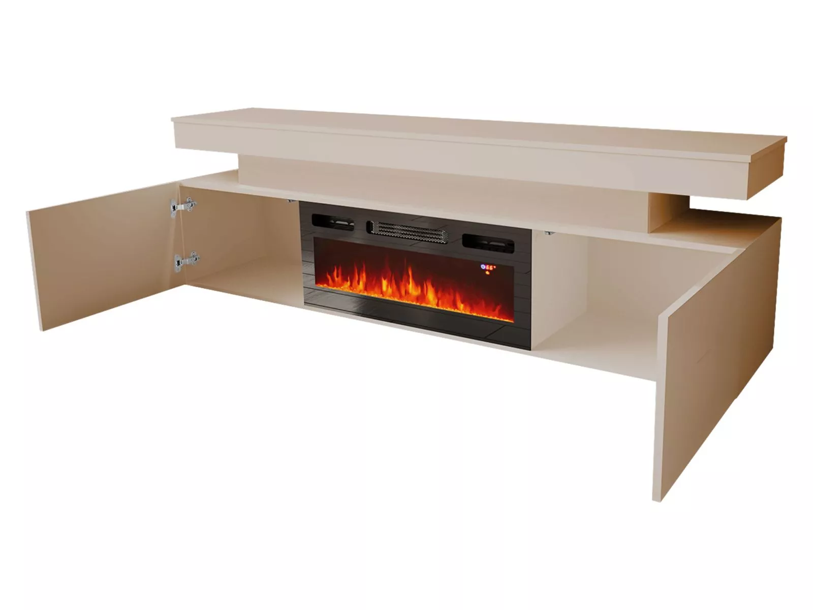 TV stolek s elektrickým krbem HYDA - pískový béžový + LED osvětlení ZDARMA
