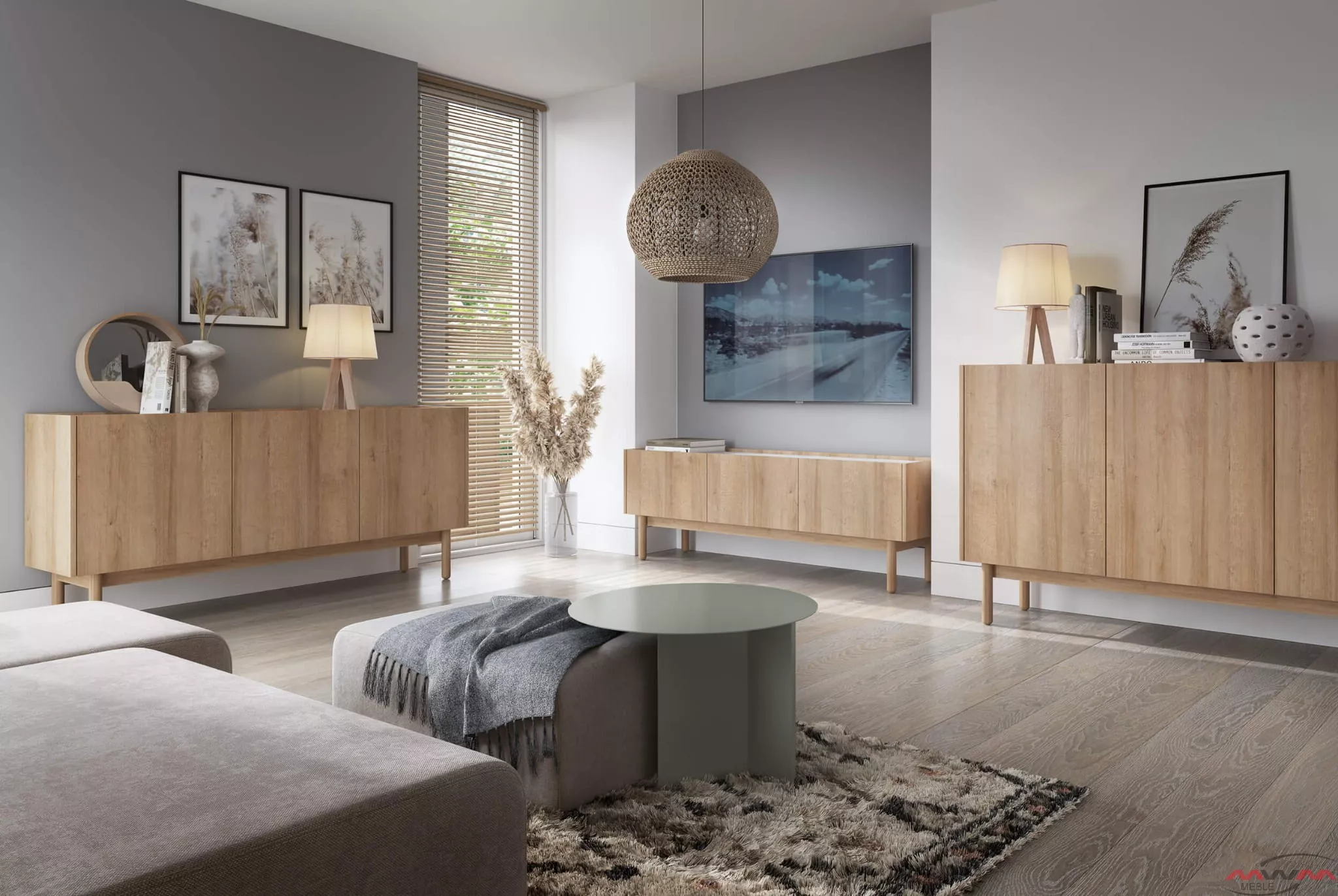 Televizní stolek ABUA - dub riviera / mramor bianco