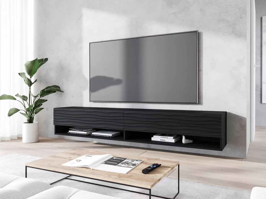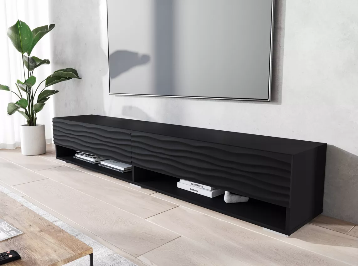 TV stolek CALIBURI 180 - černý grafitový / vzor vlna