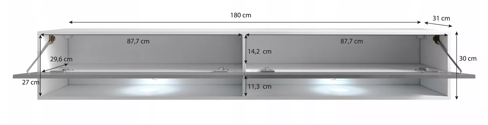 TV stolek CALIBURI 180 vás zaujme svým originálním designem. ABS hrany chrání LTD před mechanickým poškozením a vlhkostí. Skříňka má vyklápěcí dvířka a 4 přihrádky.