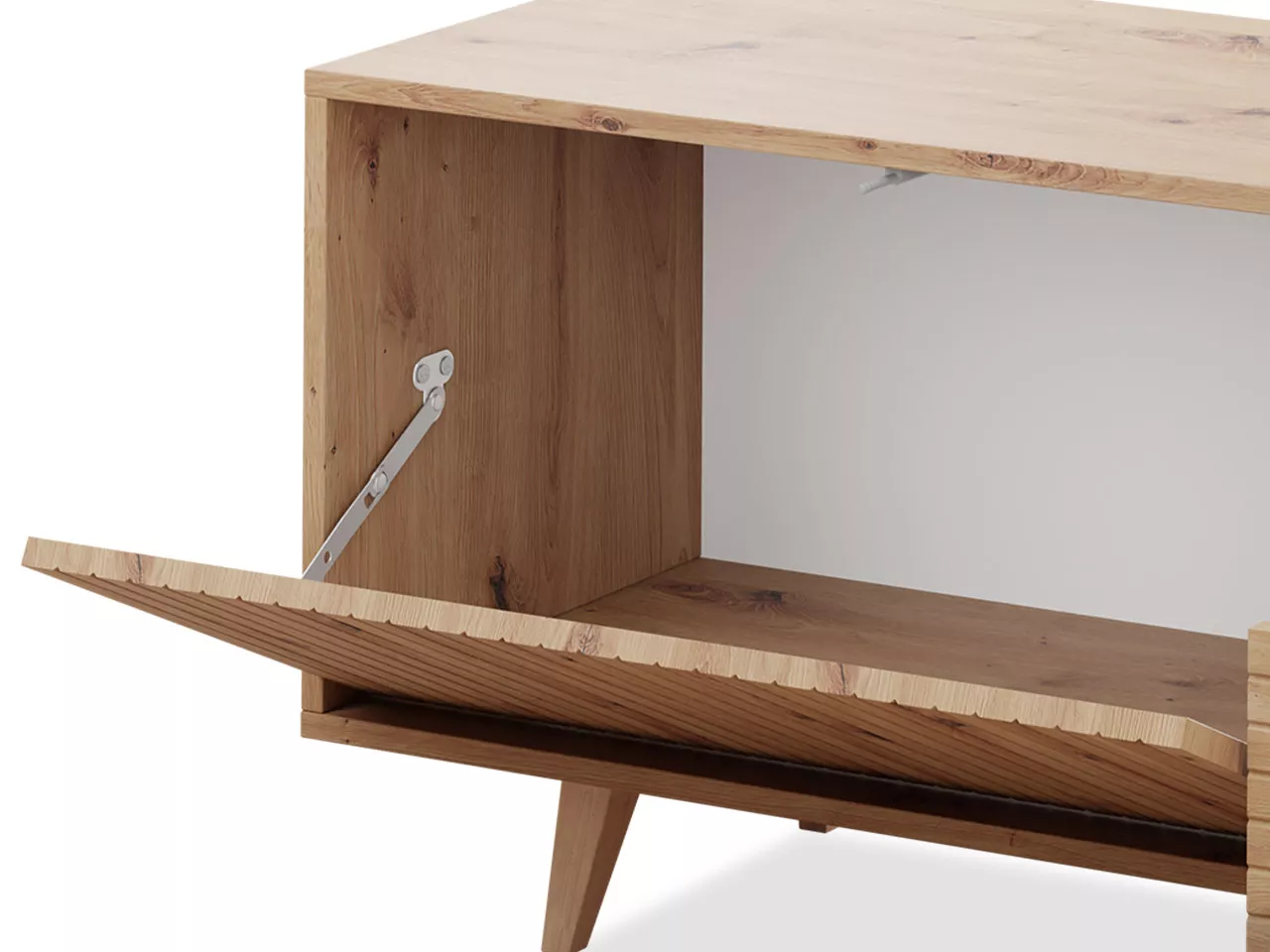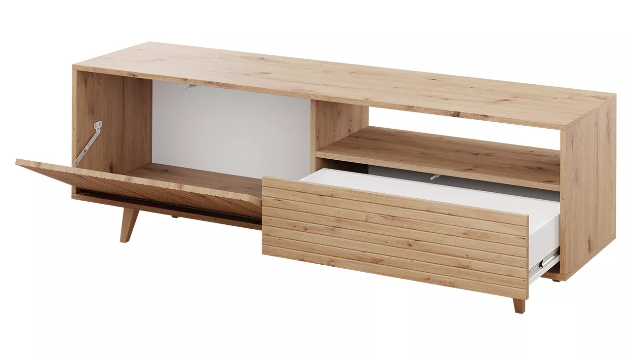Stolek pod TV PRESIDIO dokonale zapadá do designu skandinávských interiérů. Stolek je vybaven šikovnou zásuvkou, otevřenou policí a barovou skříňkou. Za zmínku stojí pohodlný systém otevírání PUSH TO OPEN, který vám usnadní každodenní používání.