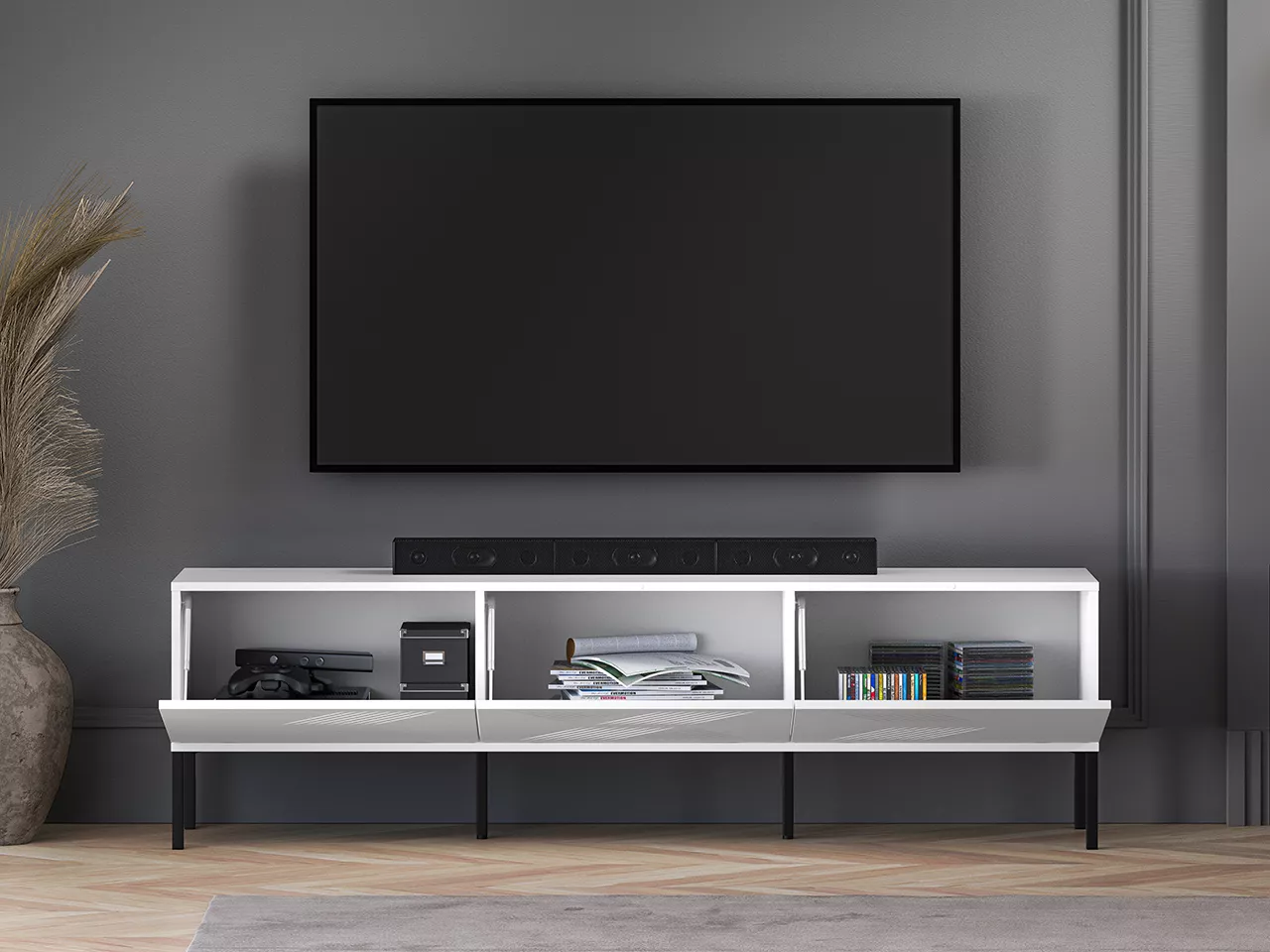 Televizní stolek ADELE 2 zaujme především stylovými vyklápěcími dvířky. Stolek disponuje 3 přihrádkami.