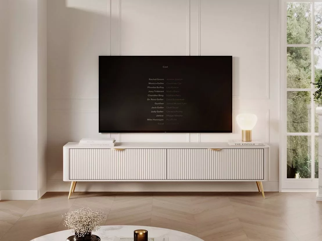 Díky televiznímu stolku CARTAGE si užijete dokonalou rovnováhu mezi funkčností a stylem. Stolek je pečlivě navržen tak, aby poskytoval dostatek místa pro vaše elektronické zařízení a současně zůstal vizuálně oslnivý. Praktické skříňky vám nabídnou dostatek úložného prostoru.
