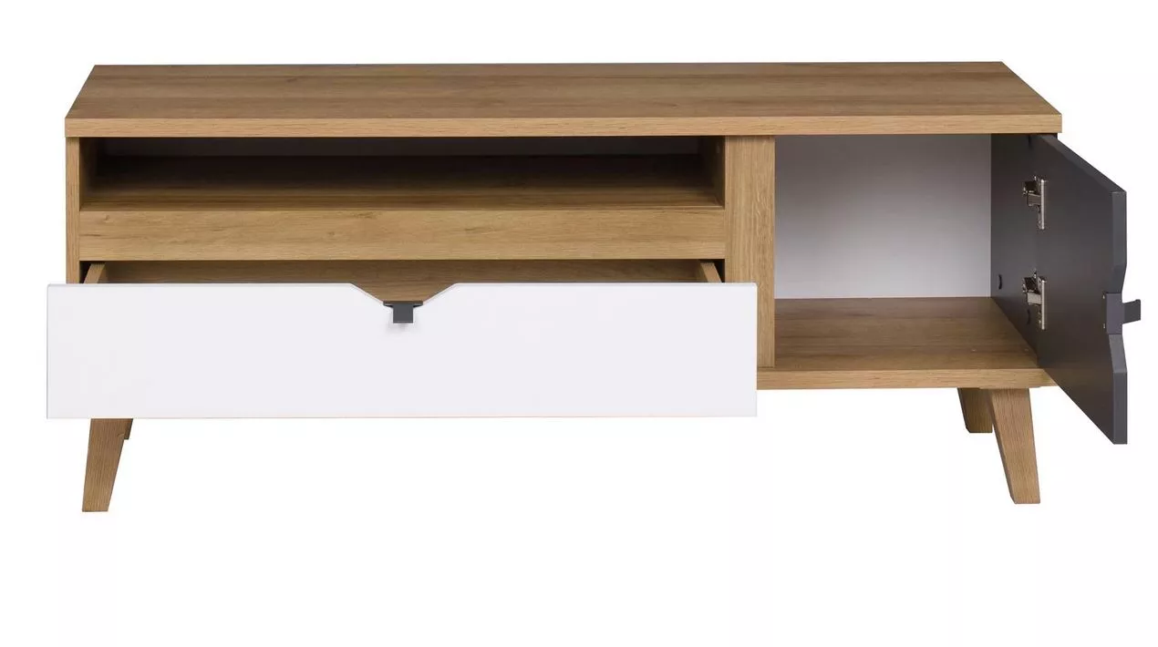 Stolek pod televizi LARNAKA - dub zlatý / bílý / grafit