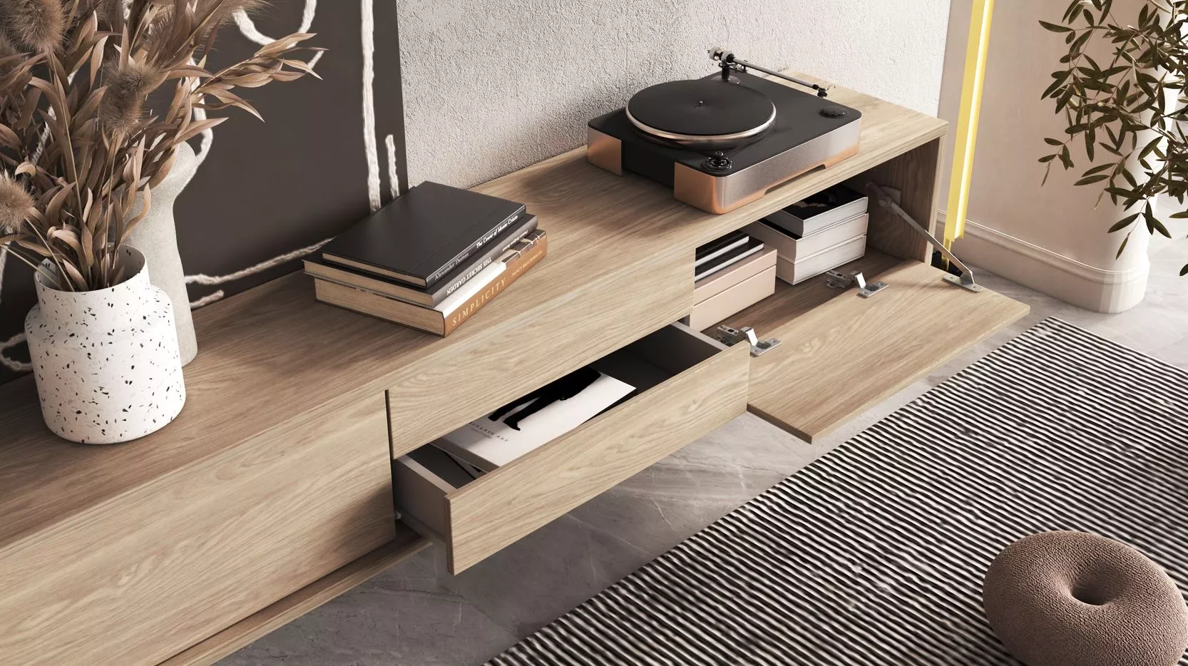 Závěsný TV stolek se šuplíky IRVING 2 - dub olejovaný