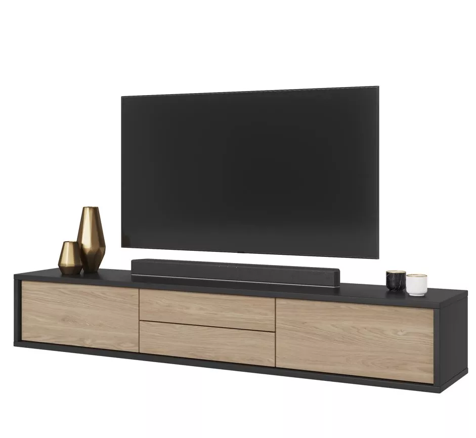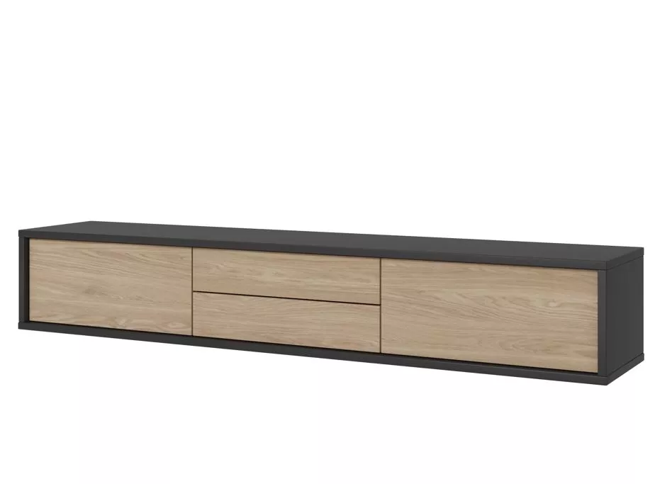 Závěsný TV stolek se šuplíky IRVING 2 - antracitový / dub olejovaný