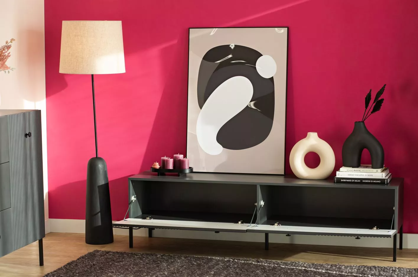 Široký televizní stolek HASKEL - antracitový