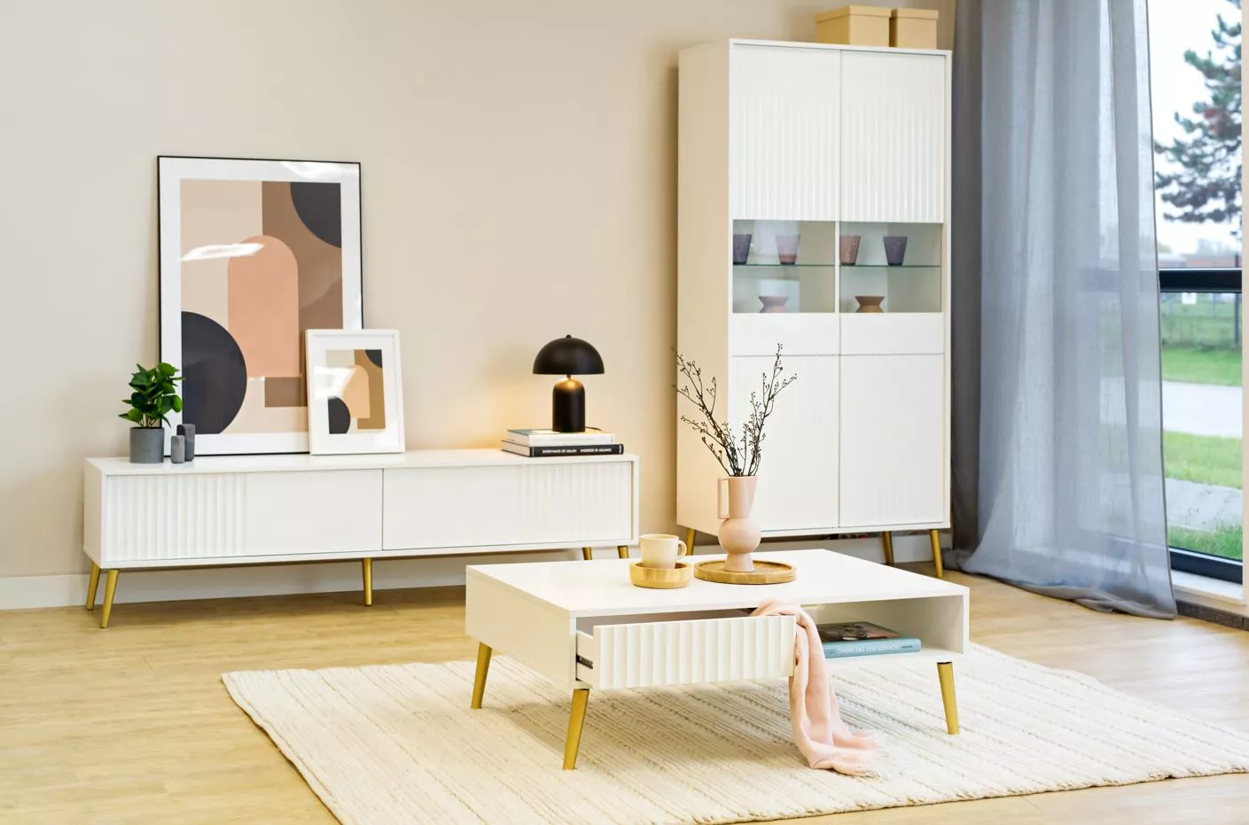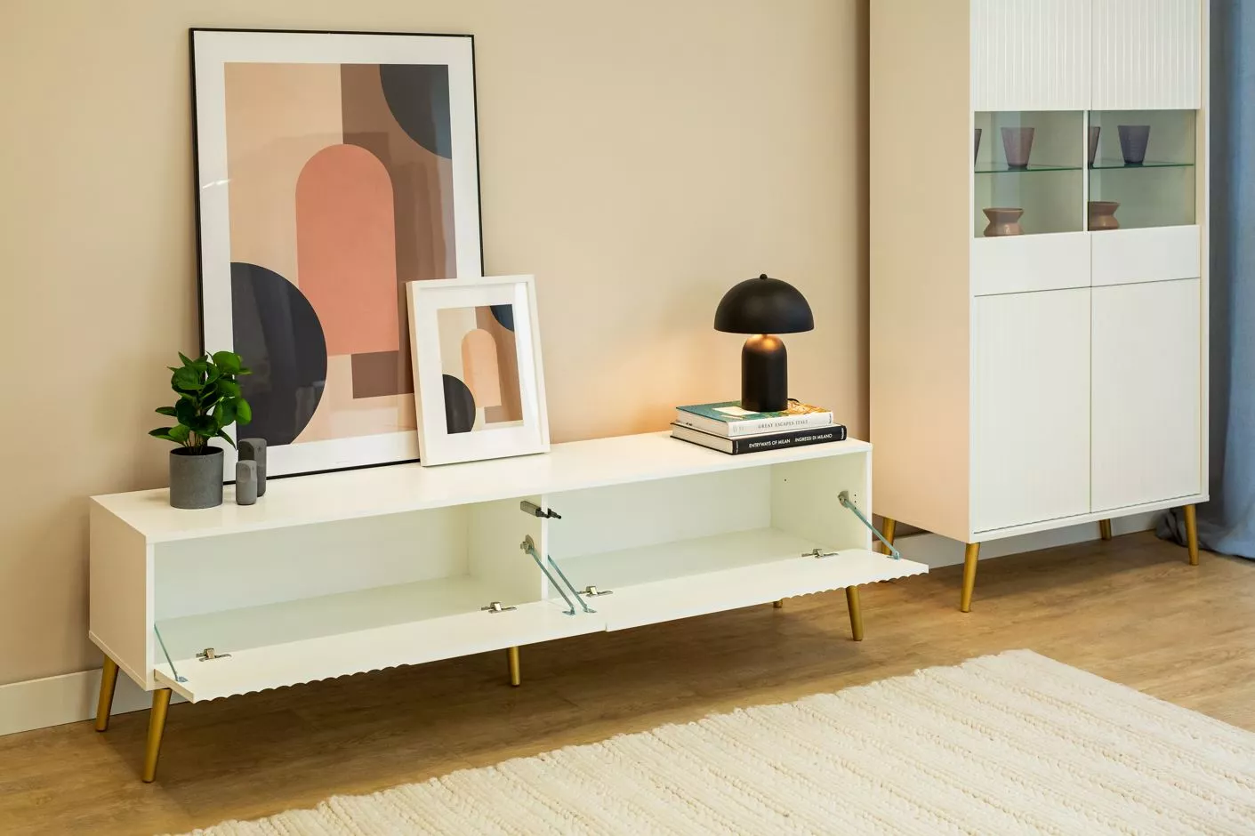 Široký stolek pod TV JEWETT - bílý