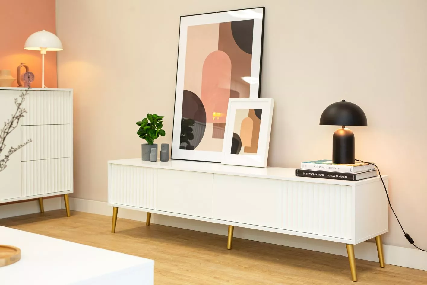 Zvýrazněte kouzlo svého obývacího pokoje se stylovým stolkem pod TV JEWETT, který nabízí ideální kombinaci estetiky a funkčnosti. Šikovné barové skříňky zajišťují dostatek úložného prostoru pro veškeré televizní příslušenství.