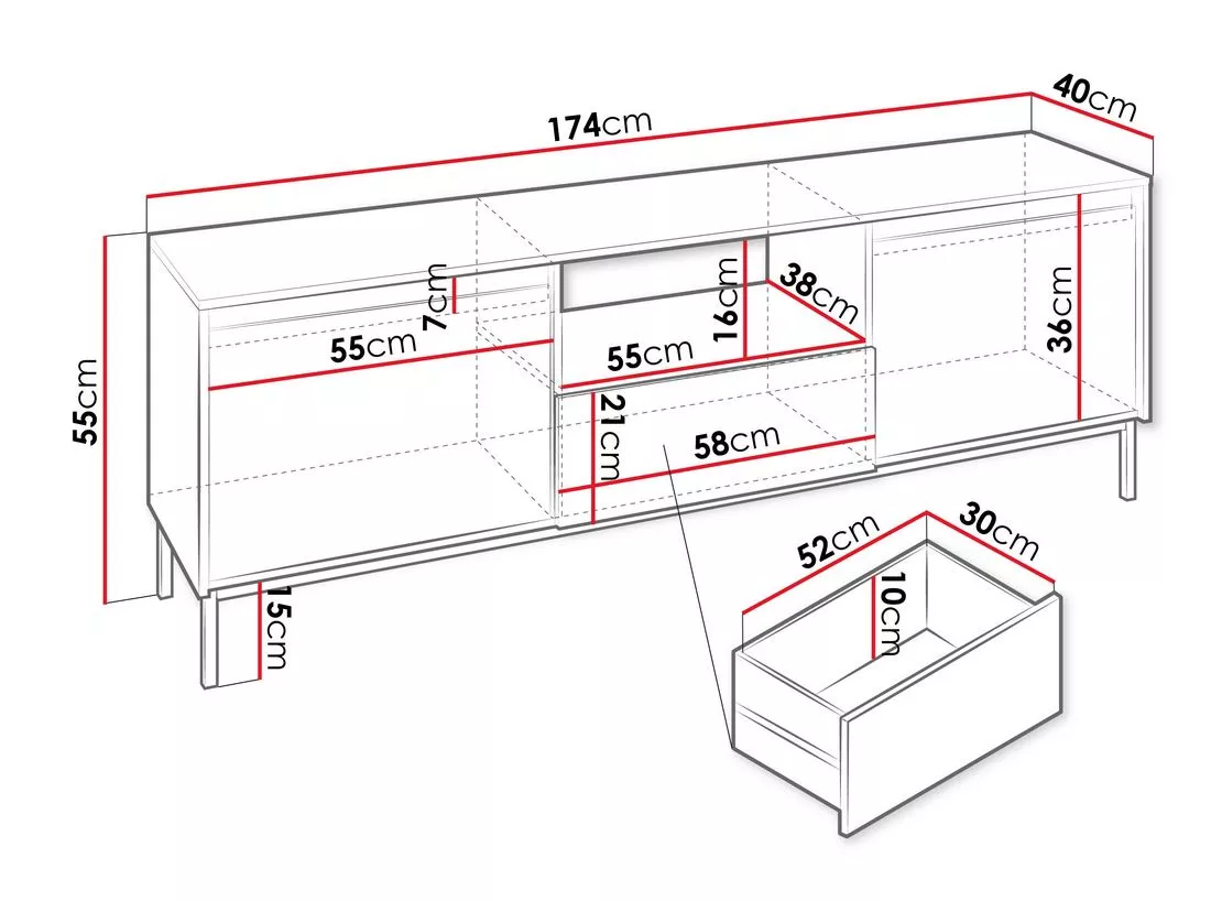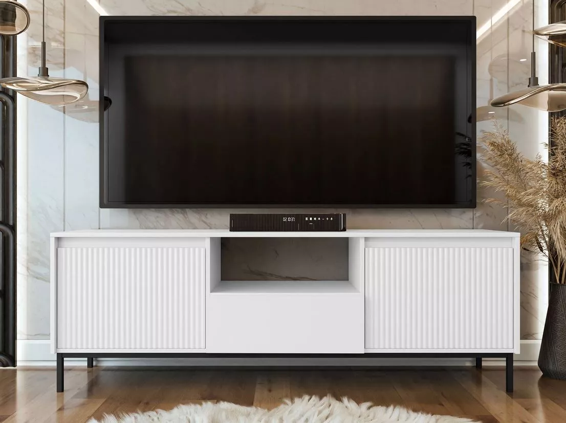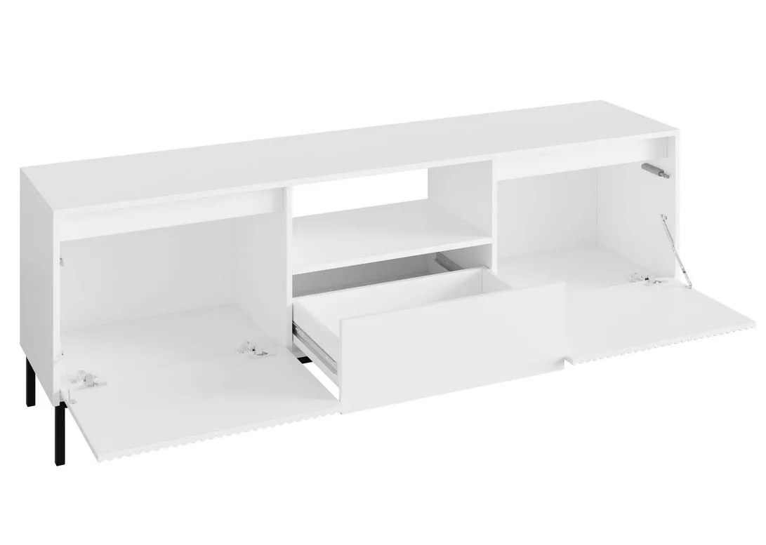 TV stolek REMY 1 je spojením podmanivého vzhledu s praktickým řešením. Pozoruhodné frézování na předních dvířkách spolu s vysokými kovovými nožkami vytváří mimořádný vizuální efekt. Stolek je vybaven 2 skříňkami a zásuvkou s poličkou pro uložení veškerého televizního příslušenství.