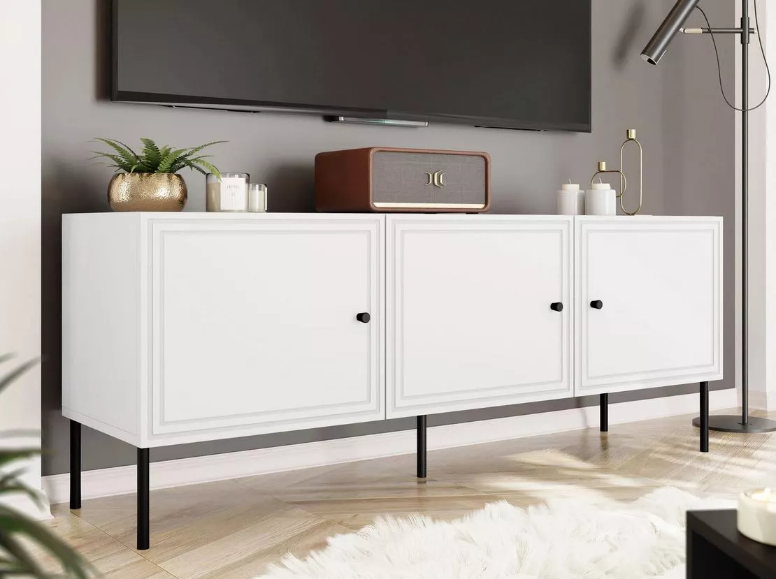 Stolek pod televizi VANILIA zdůrazní nejen jedinečný charakter interiéru, ale přinese i mnoho výhod při každodenním používání. Dvířka stolku se pyšní moderním geometrickým vzorem. Výhodou jsou také panty s tichým dovíráním.