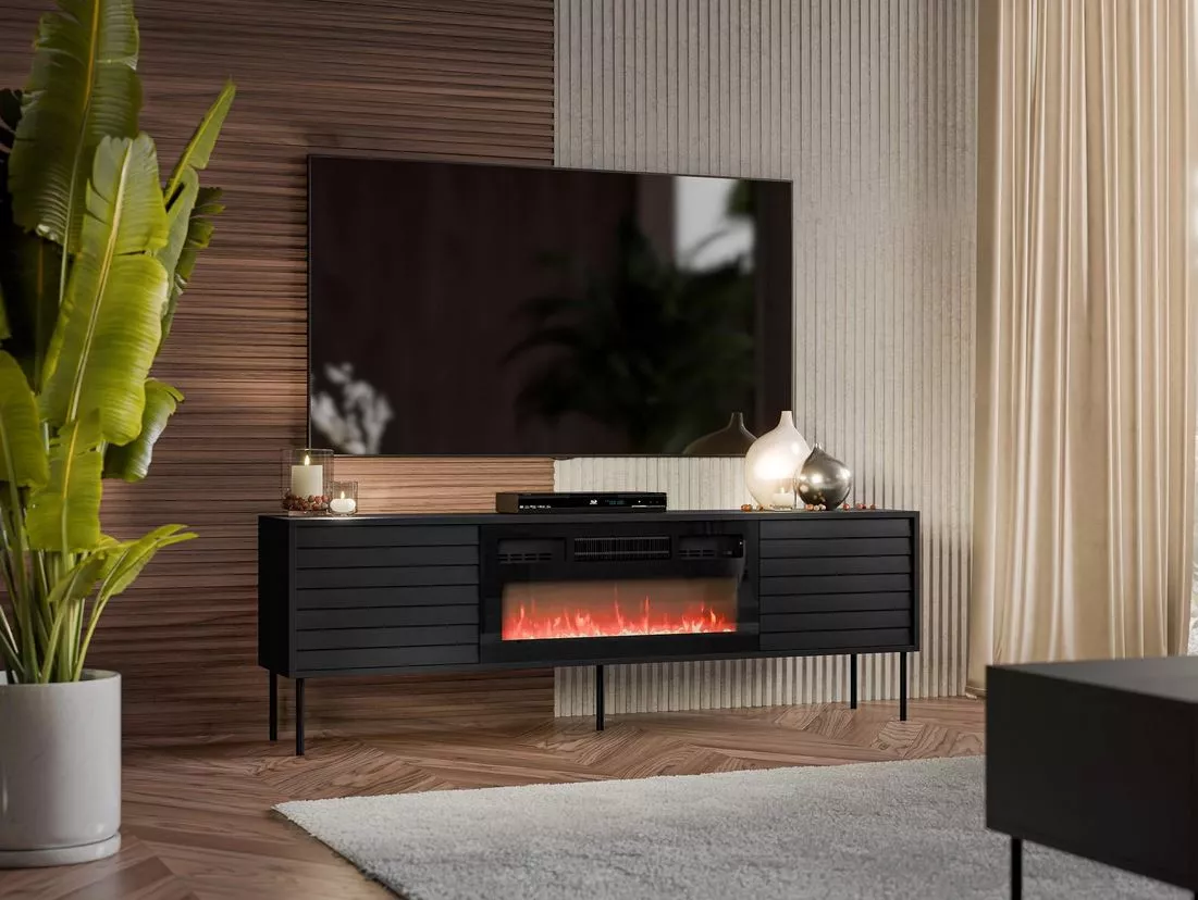Televizní stolek s elektrickým krbem MAYKI - černý