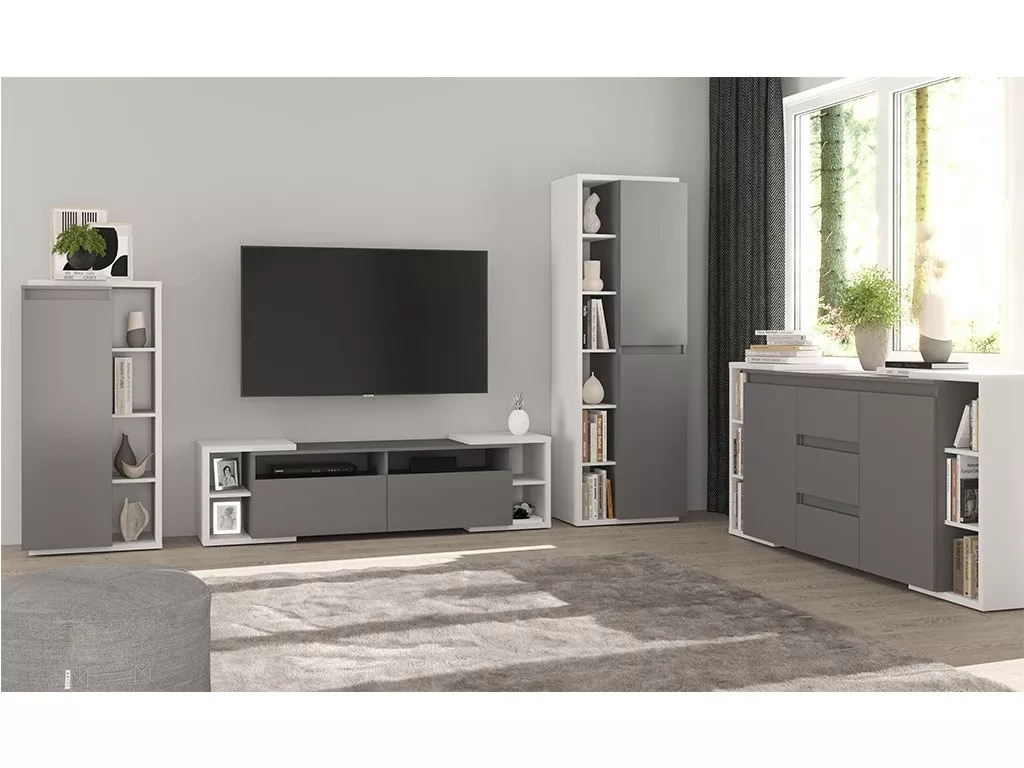 Televizní stolek LUISA se hodí do všech moderních obývacích pokojů. Stolek nabízí dostatek úložného prostoru v podobě 6 přihrádek a 2 šuplíků.